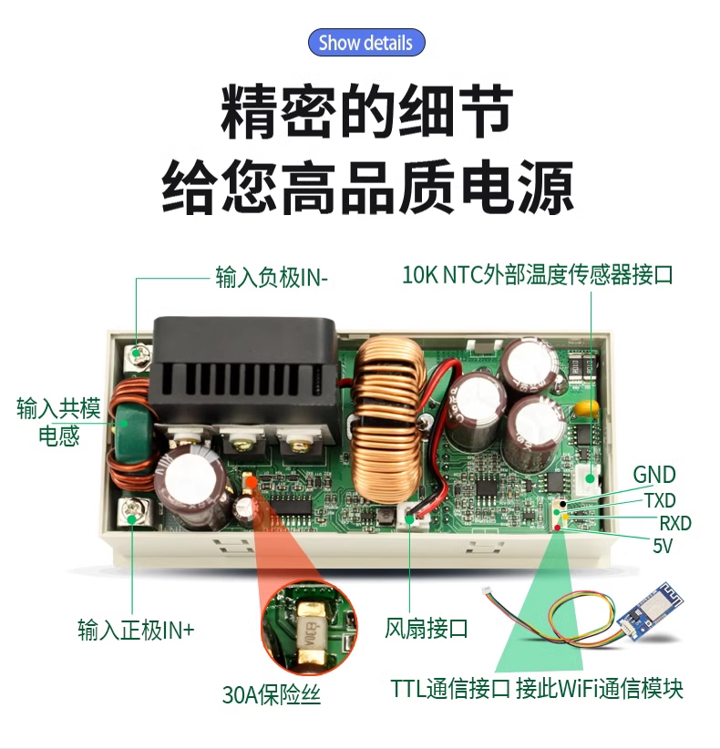XY6020 CNC может регулировать постоянное напряжение питания постоянного тока и постоянное обслуживание тока 20A/1200 Вт антигипертензивный модуль
