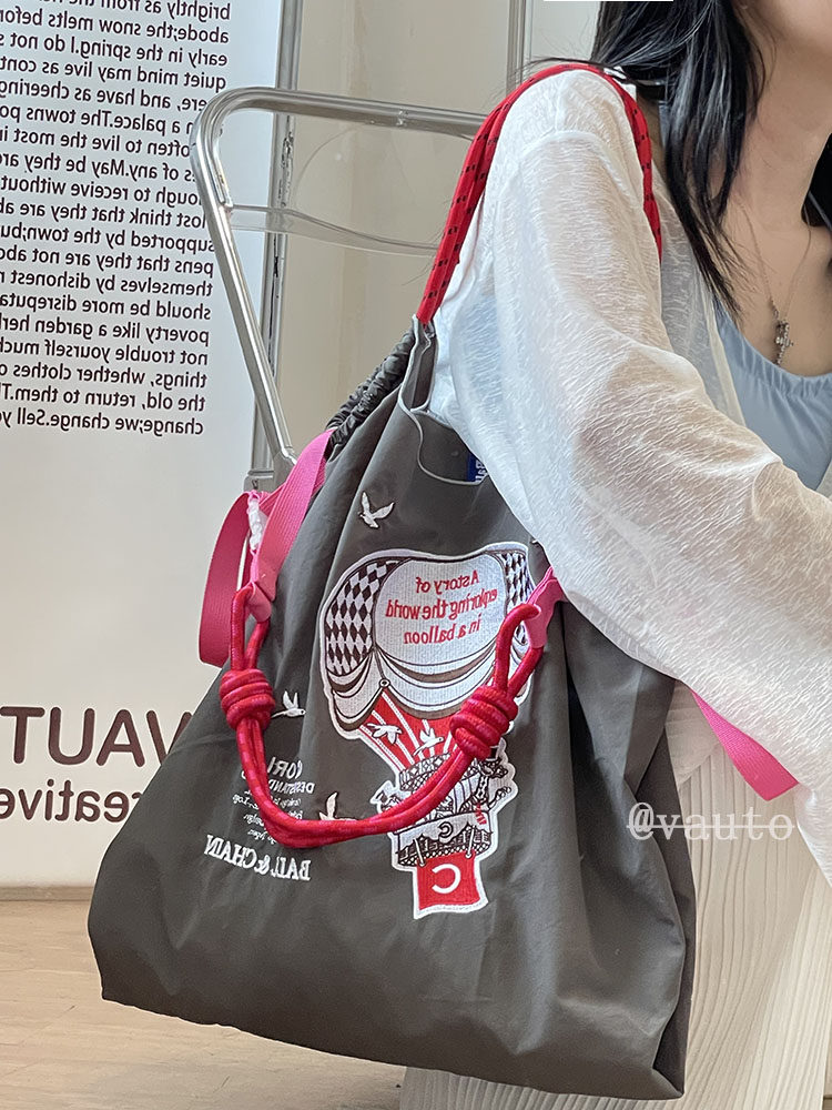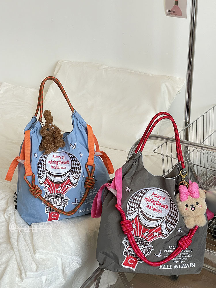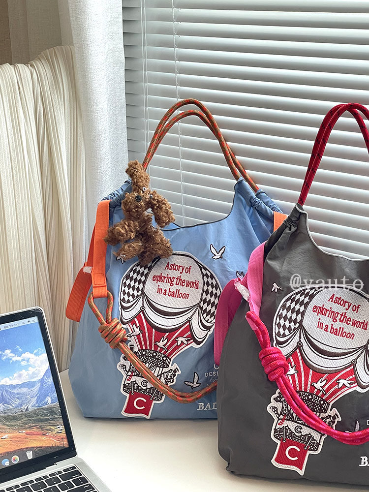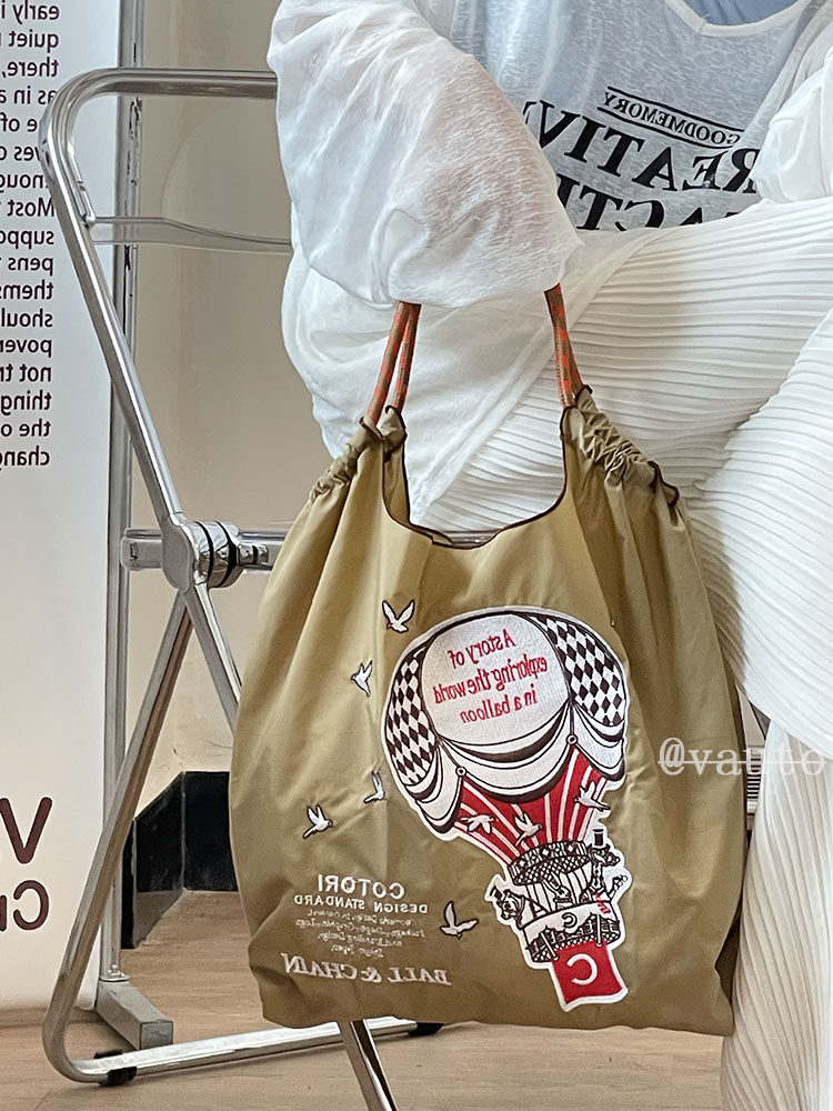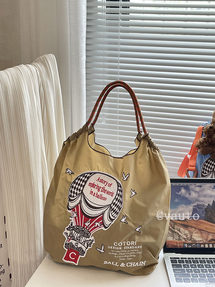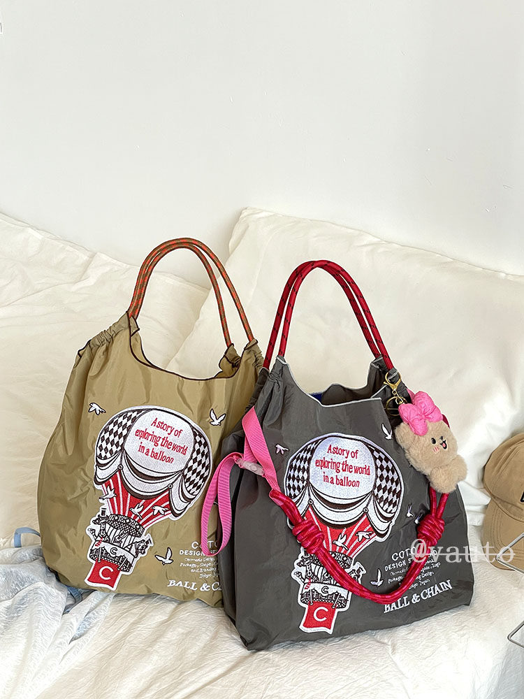 Японский воздушный шар, нейлоновый экологичный шоппер, вместительная и большая сумка на одно плечо, с вышивкой