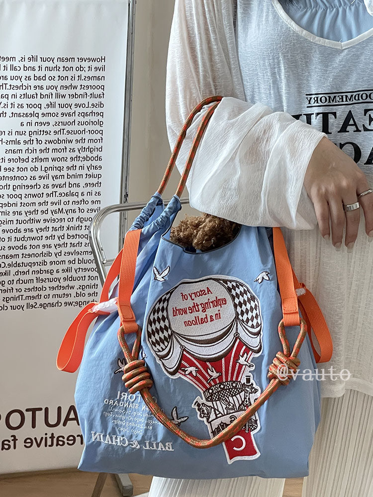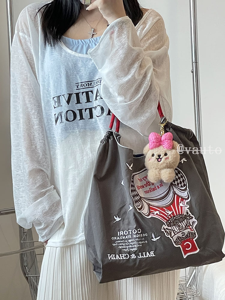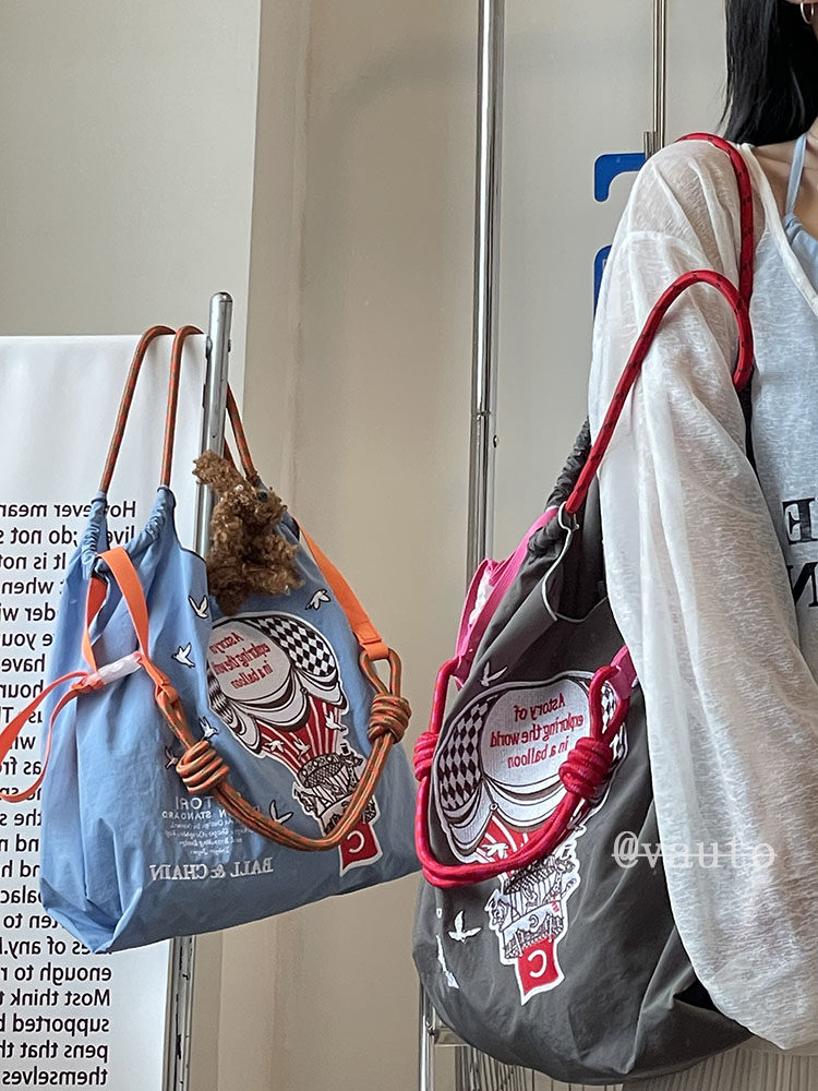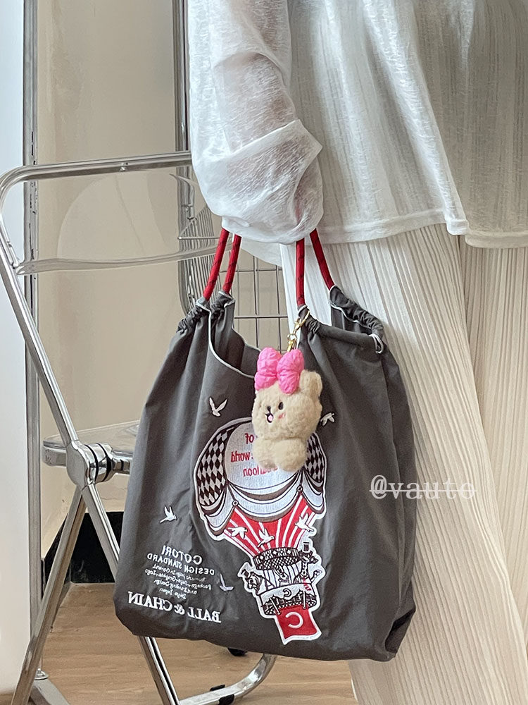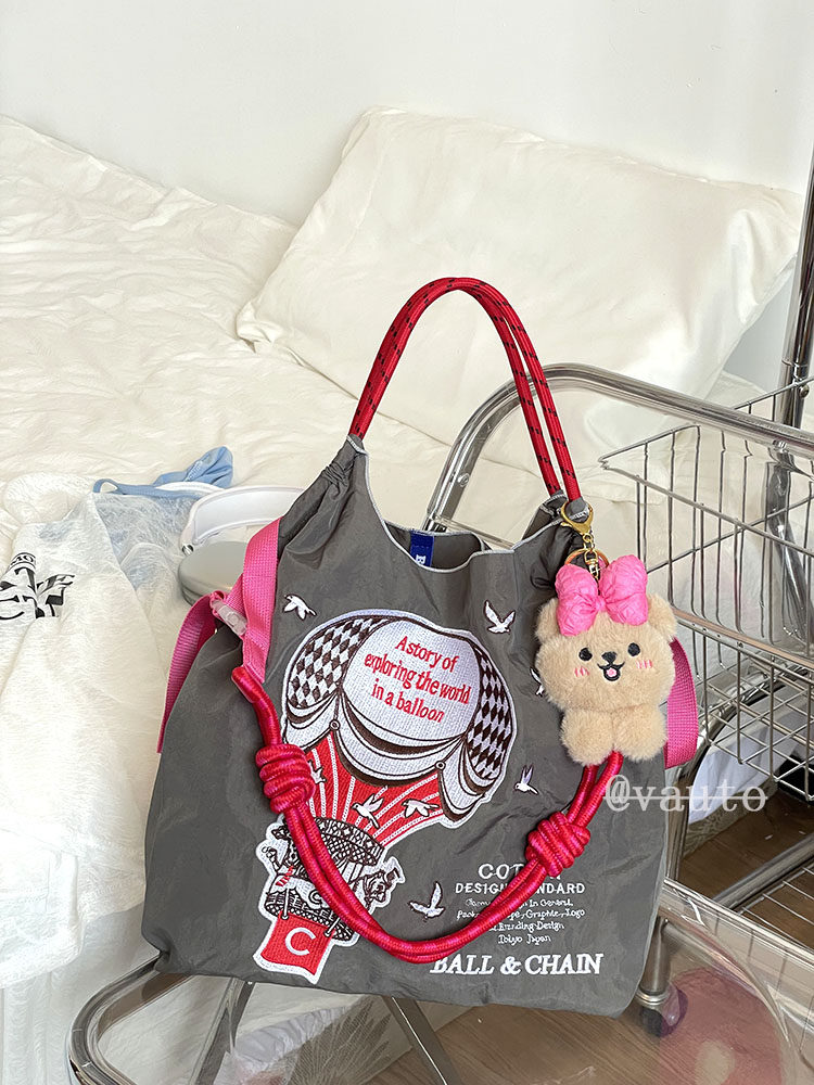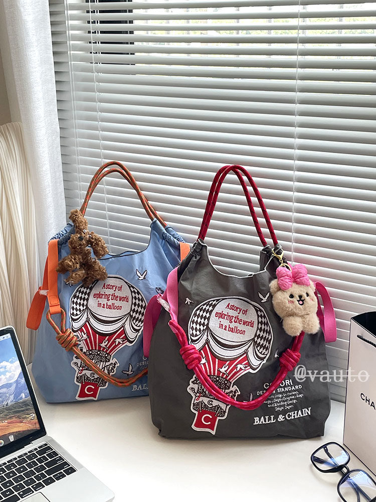 Японский воздушный шар, нейлоновый экологичный шоппер, вместительная и большая сумка на одно плечо, с вышивкой