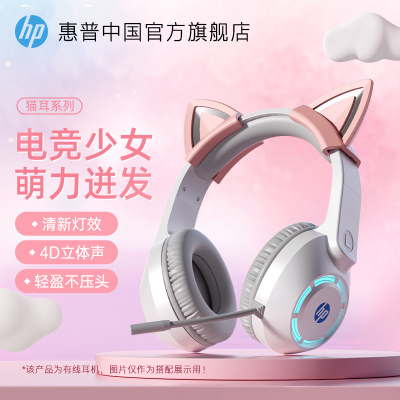 Компьютерные наушники HP «кошачьи уши» с креплением на голову, проводные игры, киберспорт, специальные настольные наушники для девочек, ноутбук, гарнитура, ест курицу