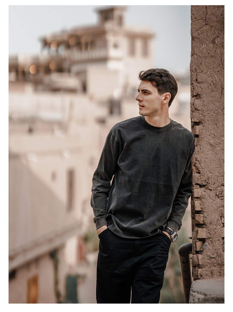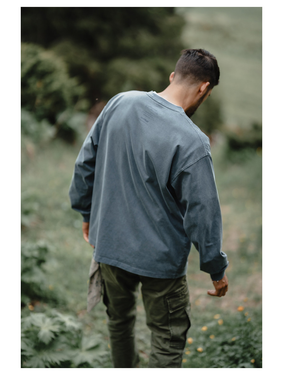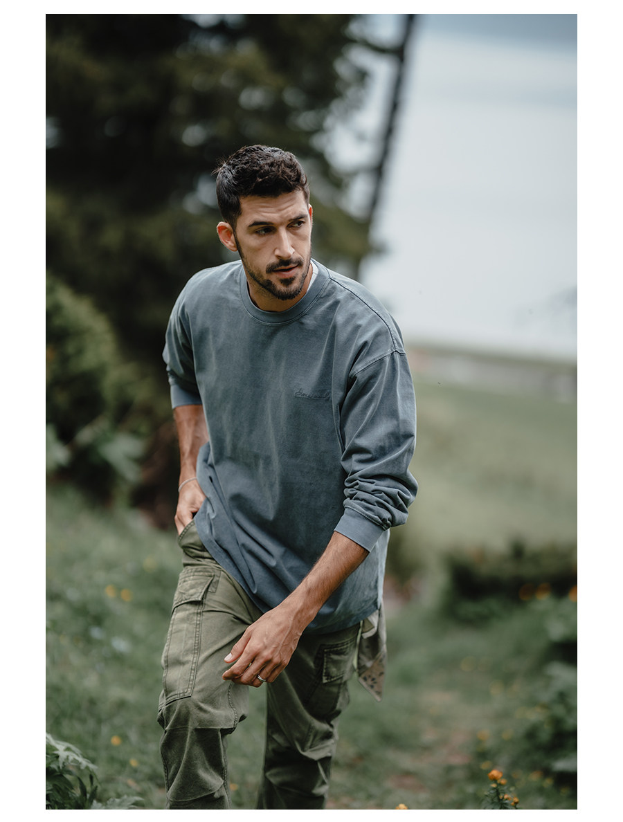 Simwood Простая деревянная мужская одежда [Свободная версия] 300 г мыть одежду из углеродной шлифовки и старая футболка с длинными рукавами