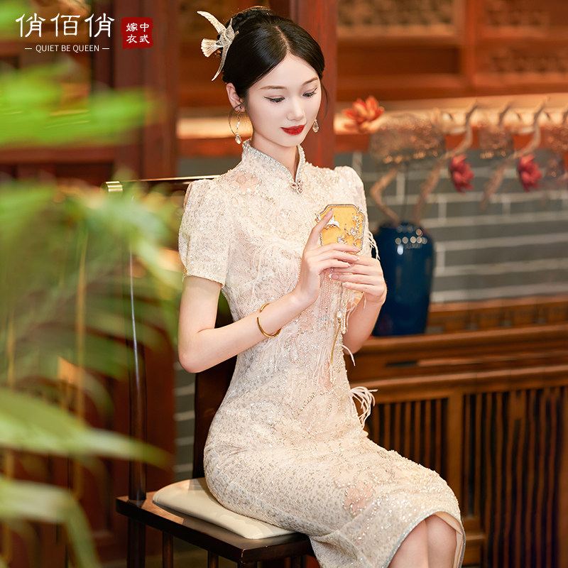 Светлое ципао, традиционный свадебный наряд Сюхэ, свадебное платье, вечернее платье, облегающий крой
