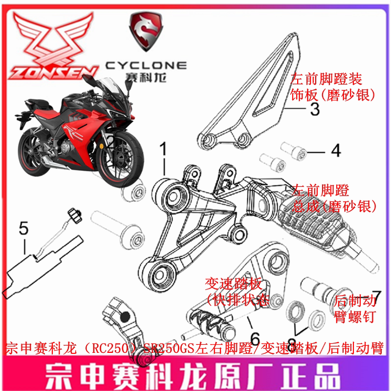 宗申 Оригинальная педали педали педали трансмиссии SR250GS задние тормозные педаль SR250 (RC250)