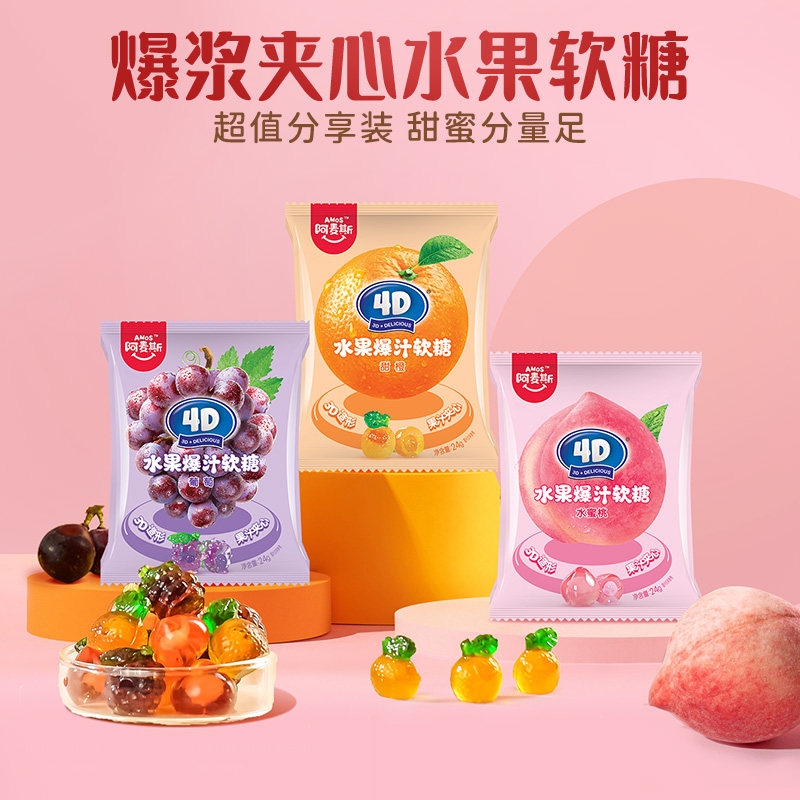 Acers 4D взрывный сок сок Fudge 24G*5 упаковок корпус формы винограда QQ Candy Leisure Office закуски