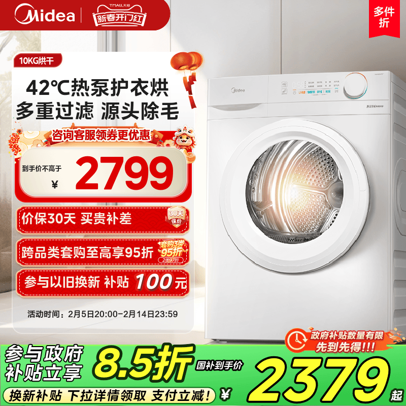 【Теплый насос сухой】 Mide 10 кг тепловой насос стерилизация стерилизации быстрого сушилки барабана v11f