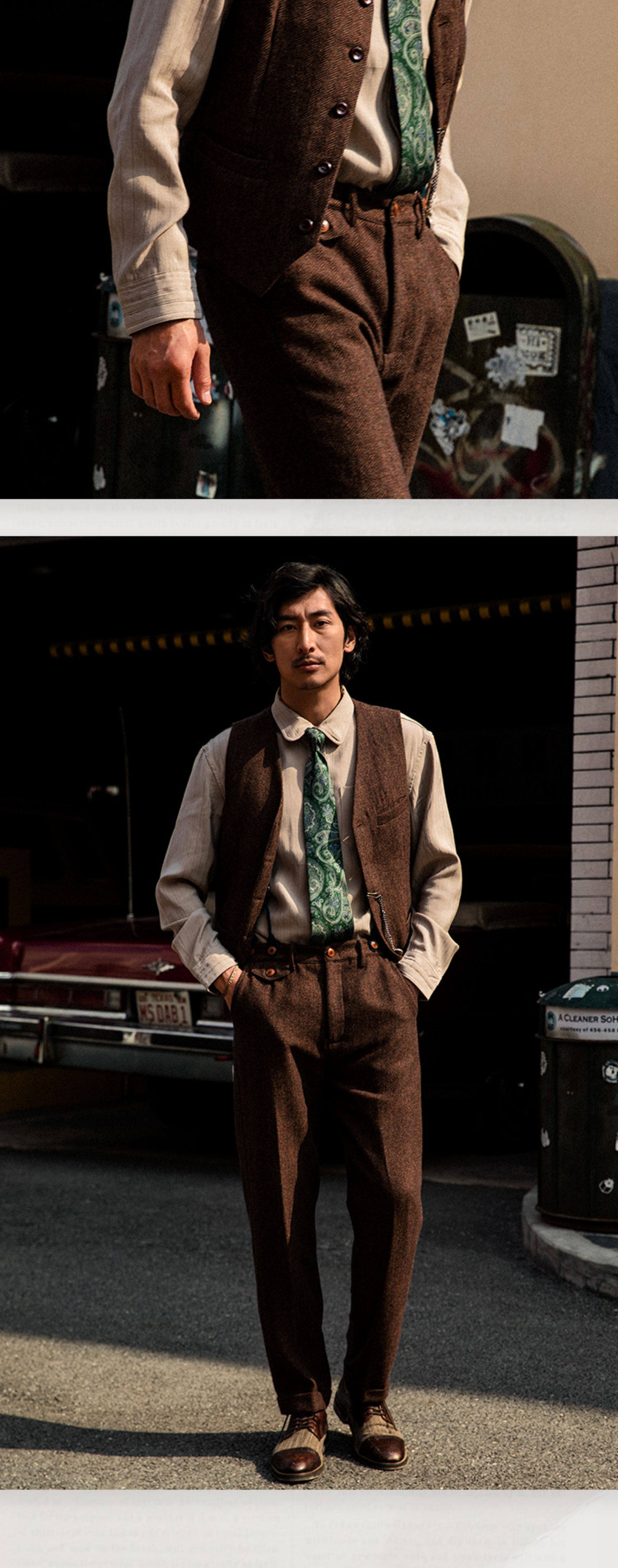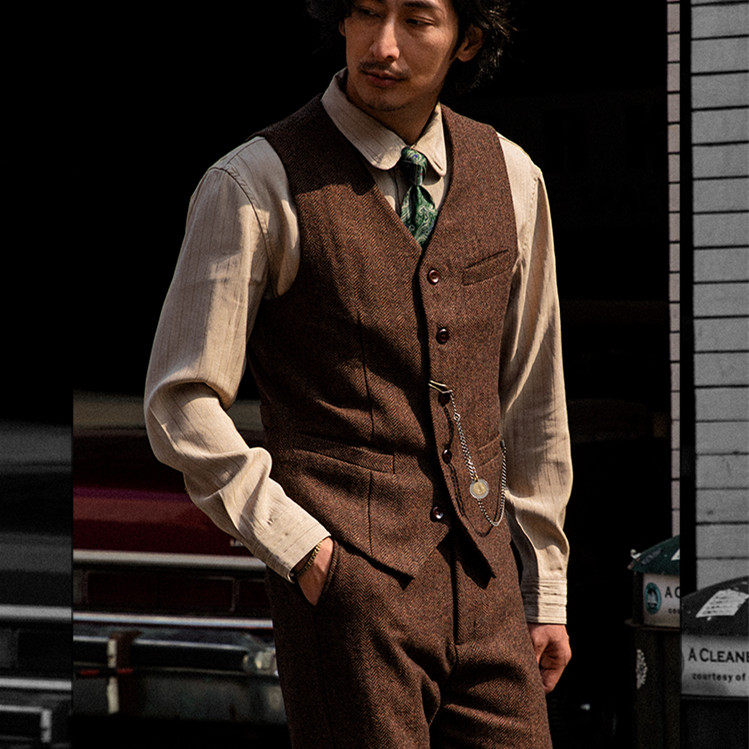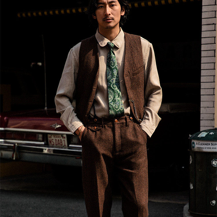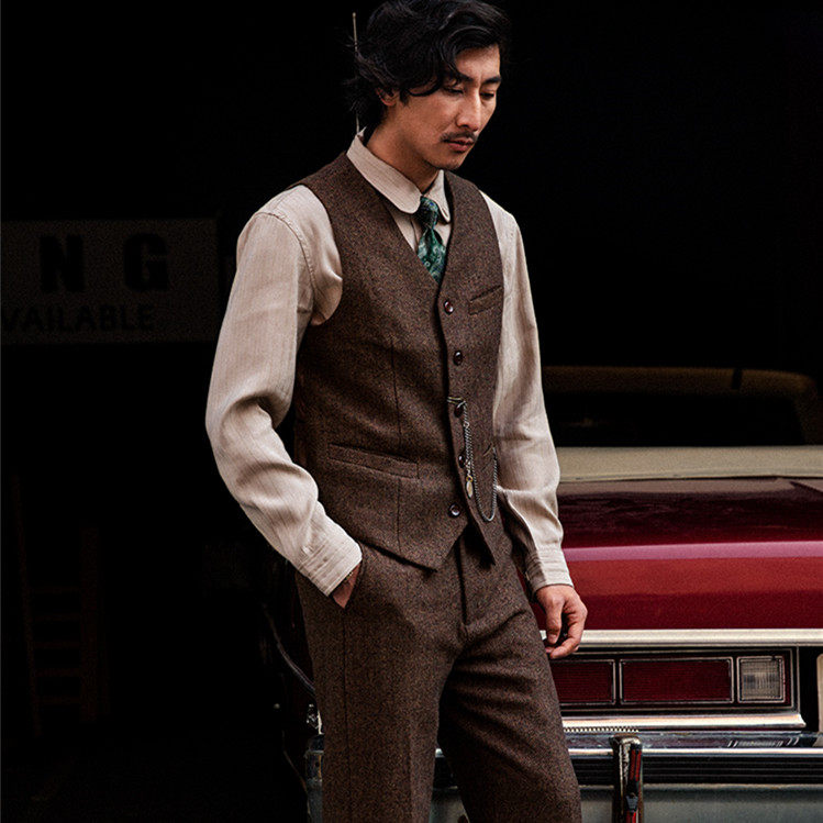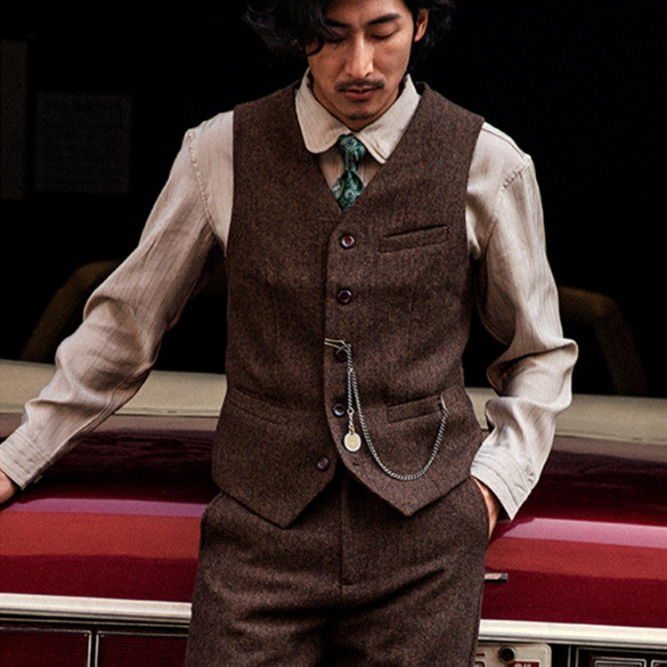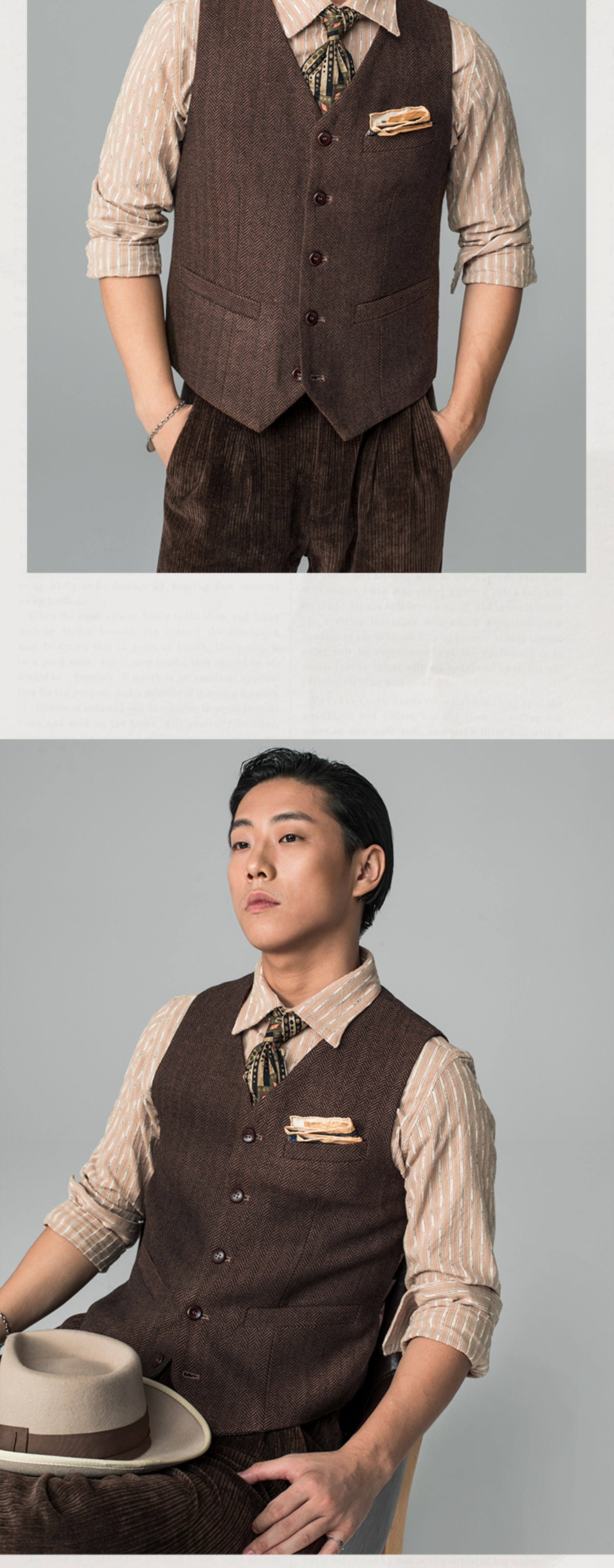 Ретро костюм, осенний жилет, шерстяная куртка