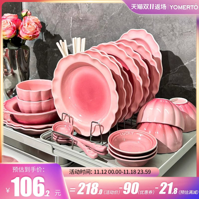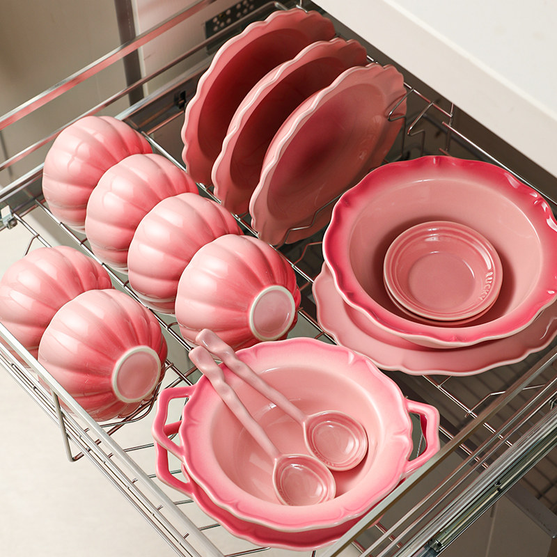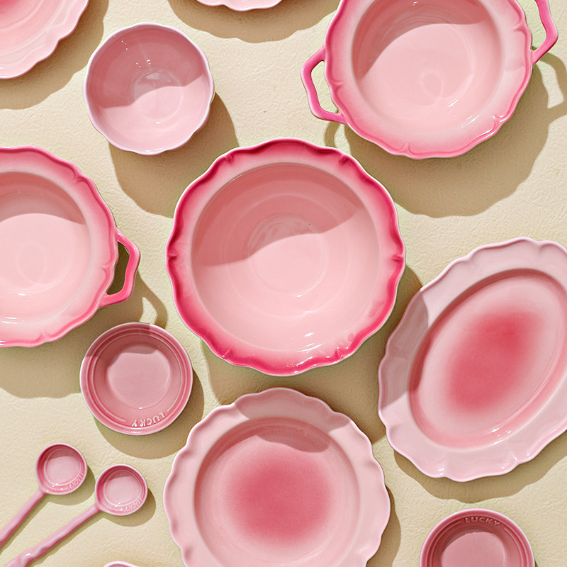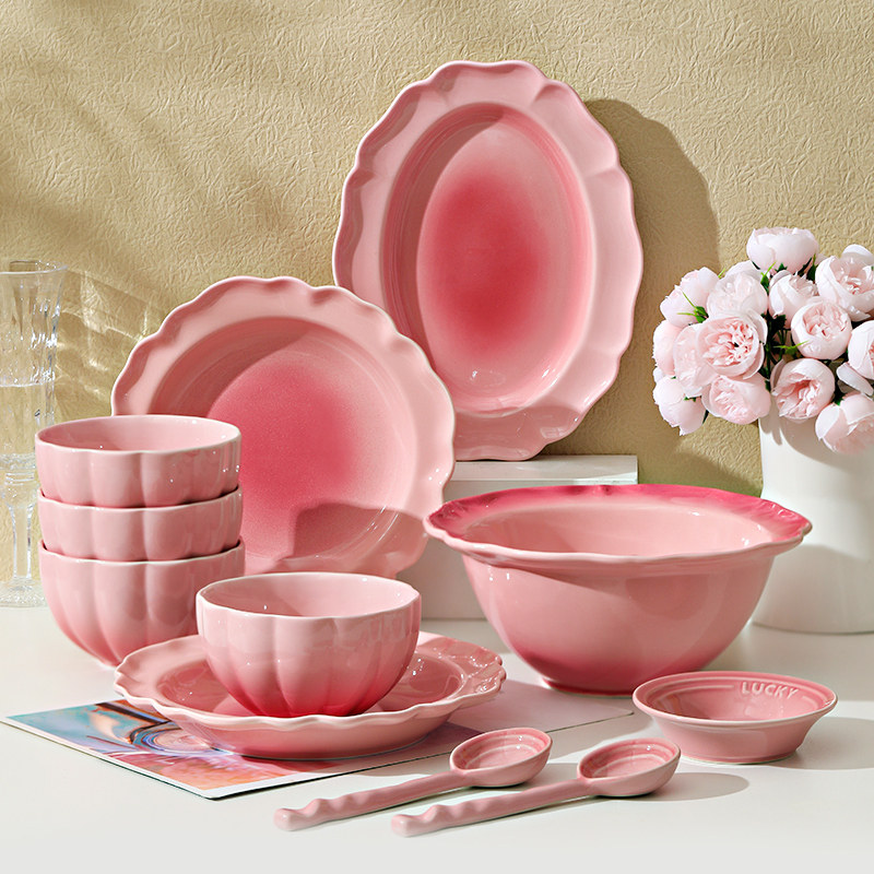 Розовые посуды, настраивая домашнюю домохозяйку 2024 Новая невеста замужем за новыми свадебными подарками и блюдами под ослленовными