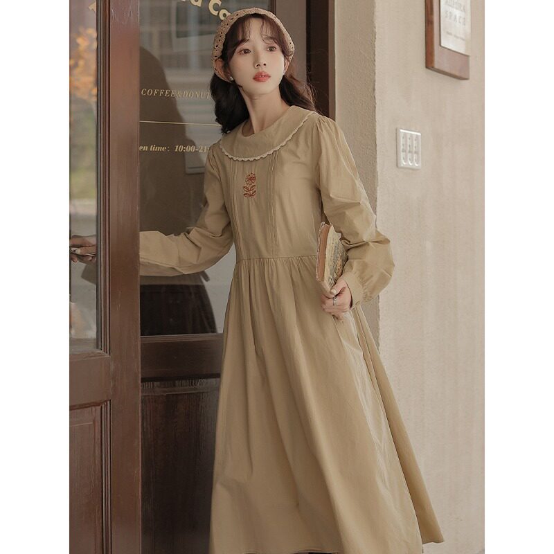 Ретро осеннее японское платье, дизайнерская длинная юбка, с вышивкой, тренд сезона, длина макси