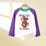 Детский хлопковый осенний лонгслив для девочек с круглым воротником, детская одежда, высокий воротник