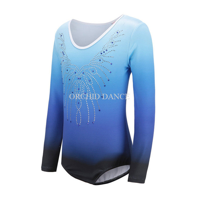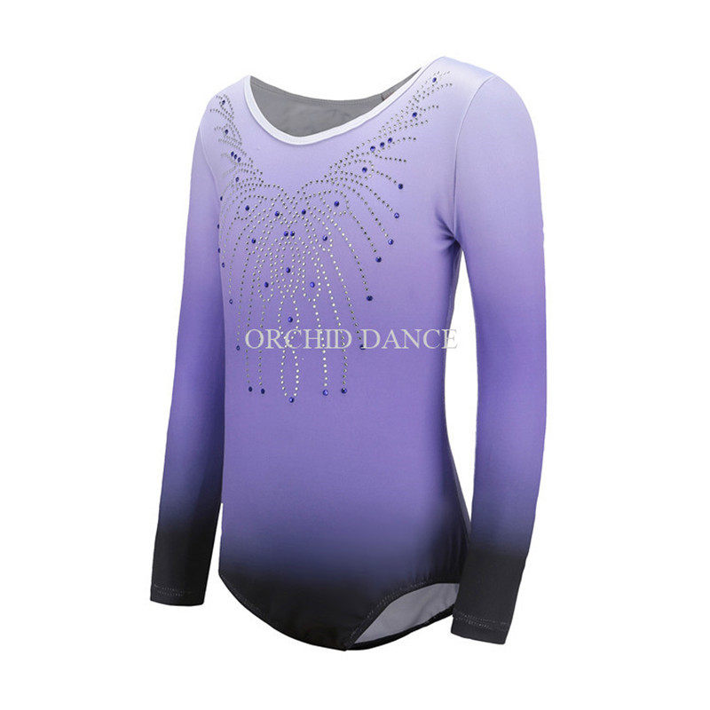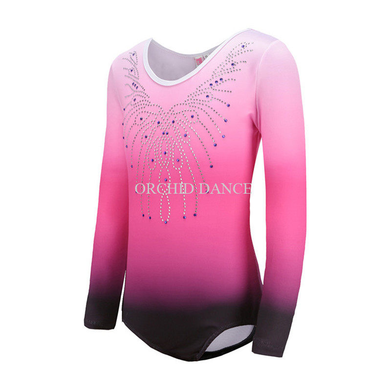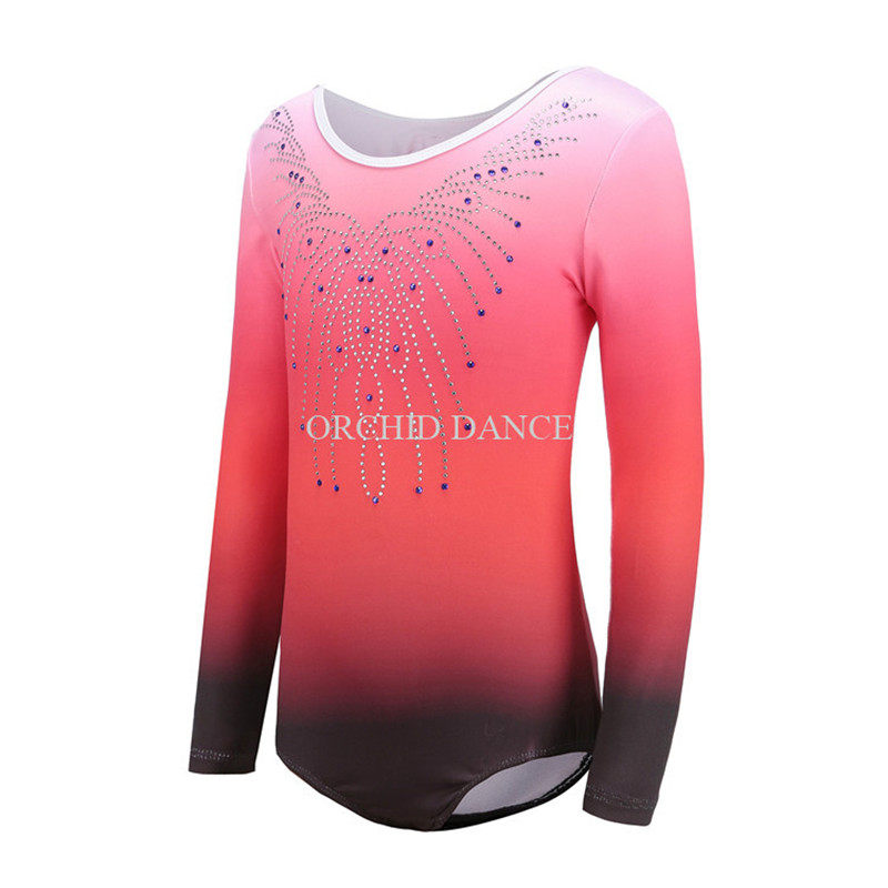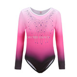 Детская тренировочная одежда для спортивной гимнастики, комбинезон с длинными рукавами и бриллиантами, одежда для танцевальных выступлений, одежда для групповых соревнований по аэробике