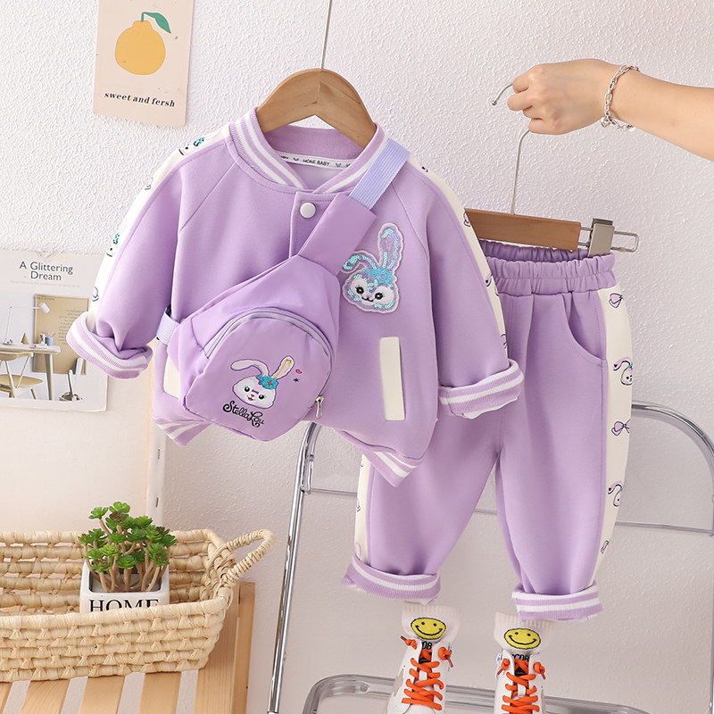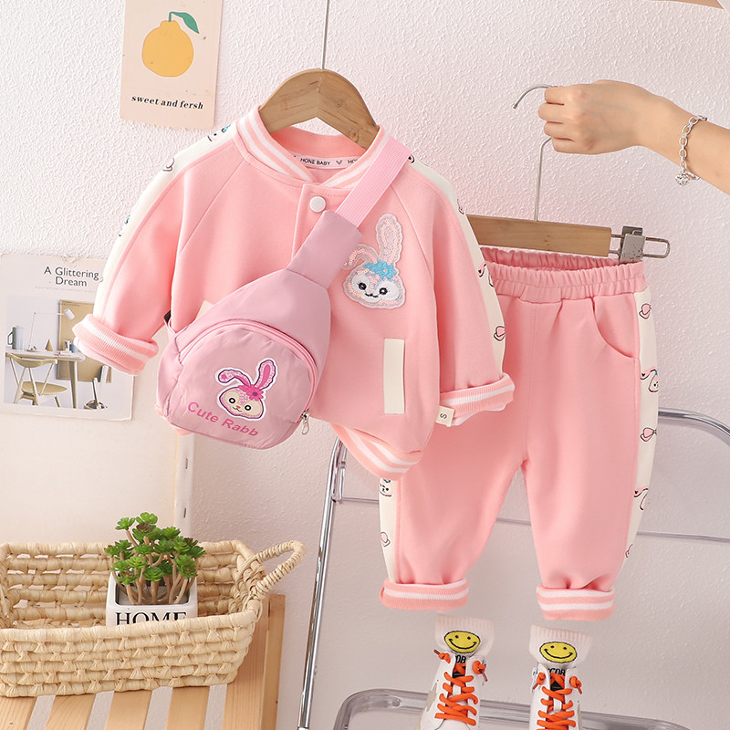 Детский демисезонный комбинезон, мультяшный лонгслив, осенний комплект для девочек для выхода на улицу