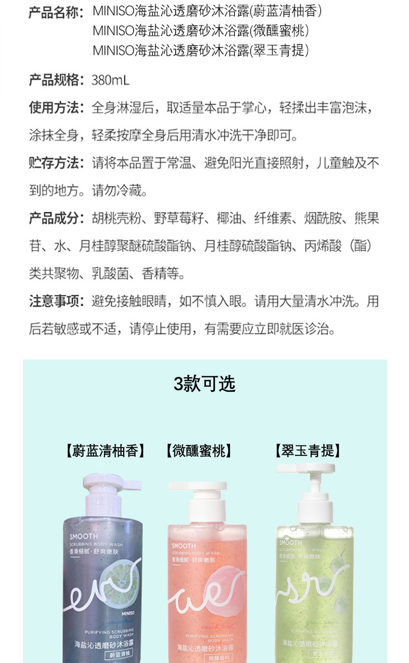 Miniso, морская соль, матовый гель для душа, освежающий парфюмированный лосьон, омоложение кожи