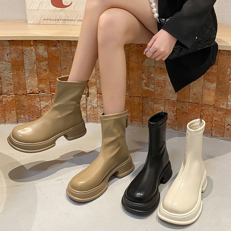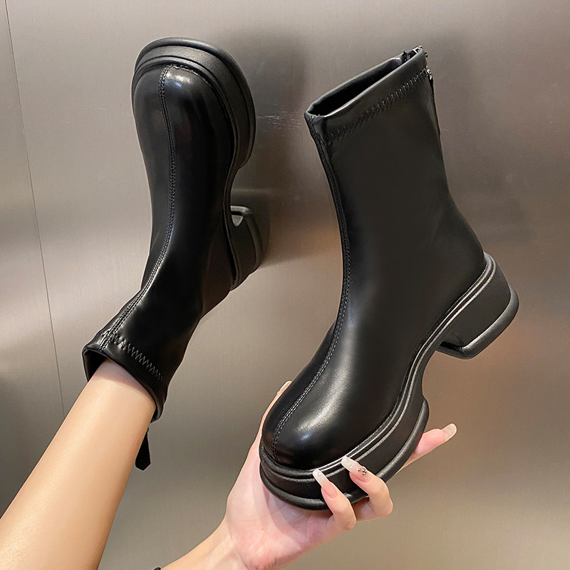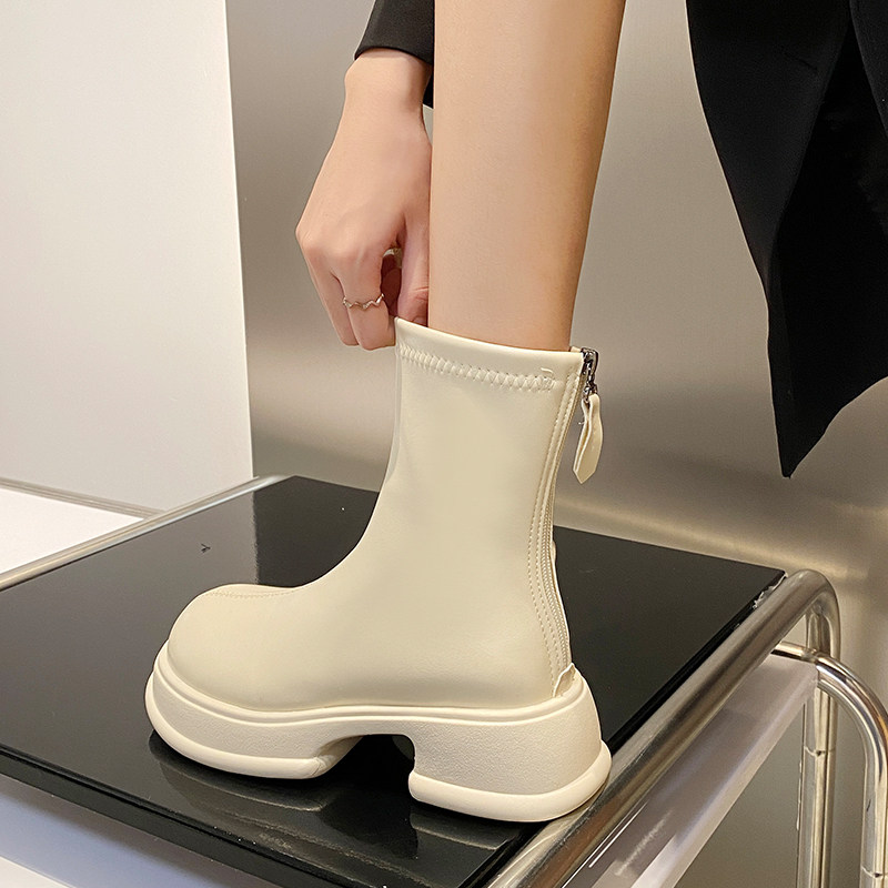 Martens, демисезонные короткие сапоги, флисовые ботинки на платформе в английском стиле с молнией, 2024 года, осенние, тренд сезона, в британском стиле