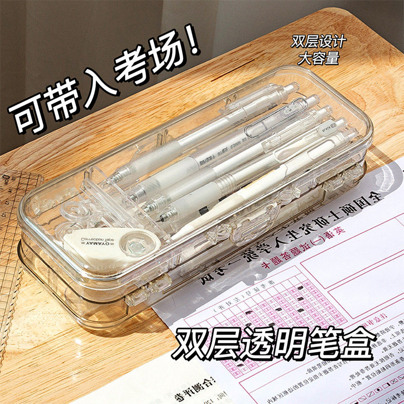 Акриловый прозрачный двухэтажный пенал для мальчиков, детская пластиковая система хранения для школьников, канцтовары, для средней школы