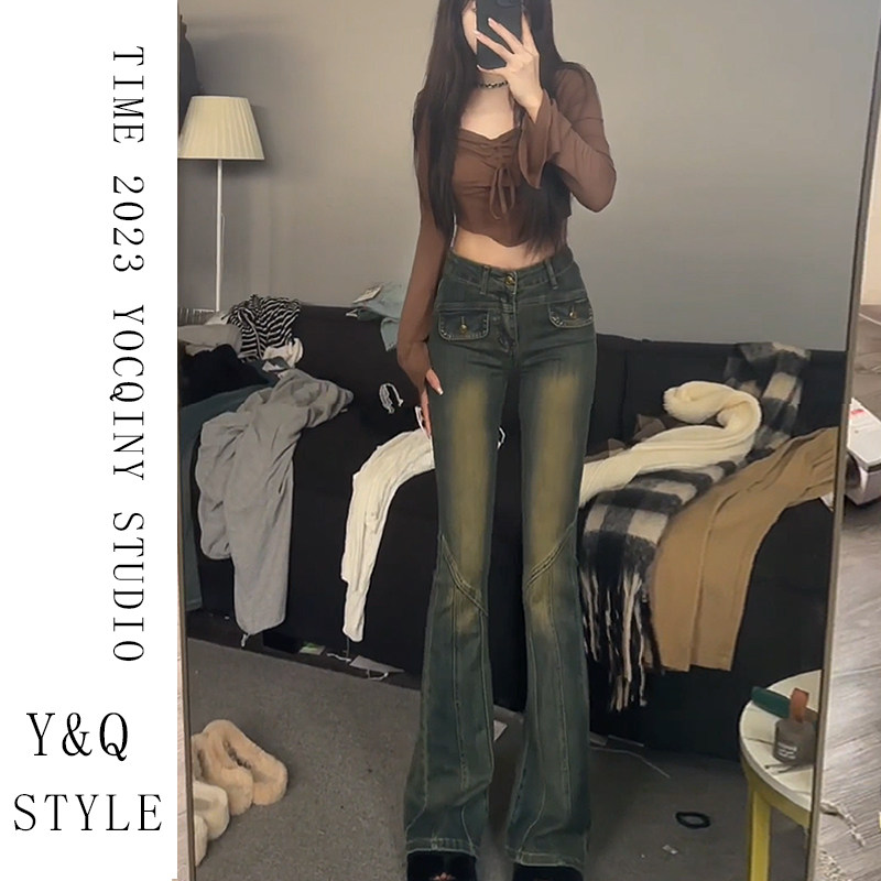 Ретро мегафон, джинсы, эластичные осенние штаны, европейский стиль, облегающий крой, коллекция 2023