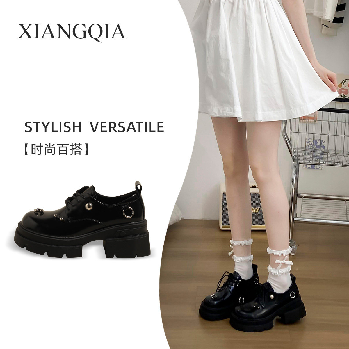 XQIA Meng Ling в том же стиле ~ Мокасины в британском стиле на толстой подошве для женских туфель Лолита, увеличивающих рост, модный новый стиль для поездок на работу