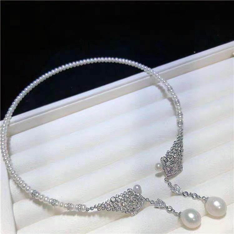 Ожерелье из жемчуга, натуральный чокер, короткий изысканный универсальный дизайнерский свитер, изысканный стиль
