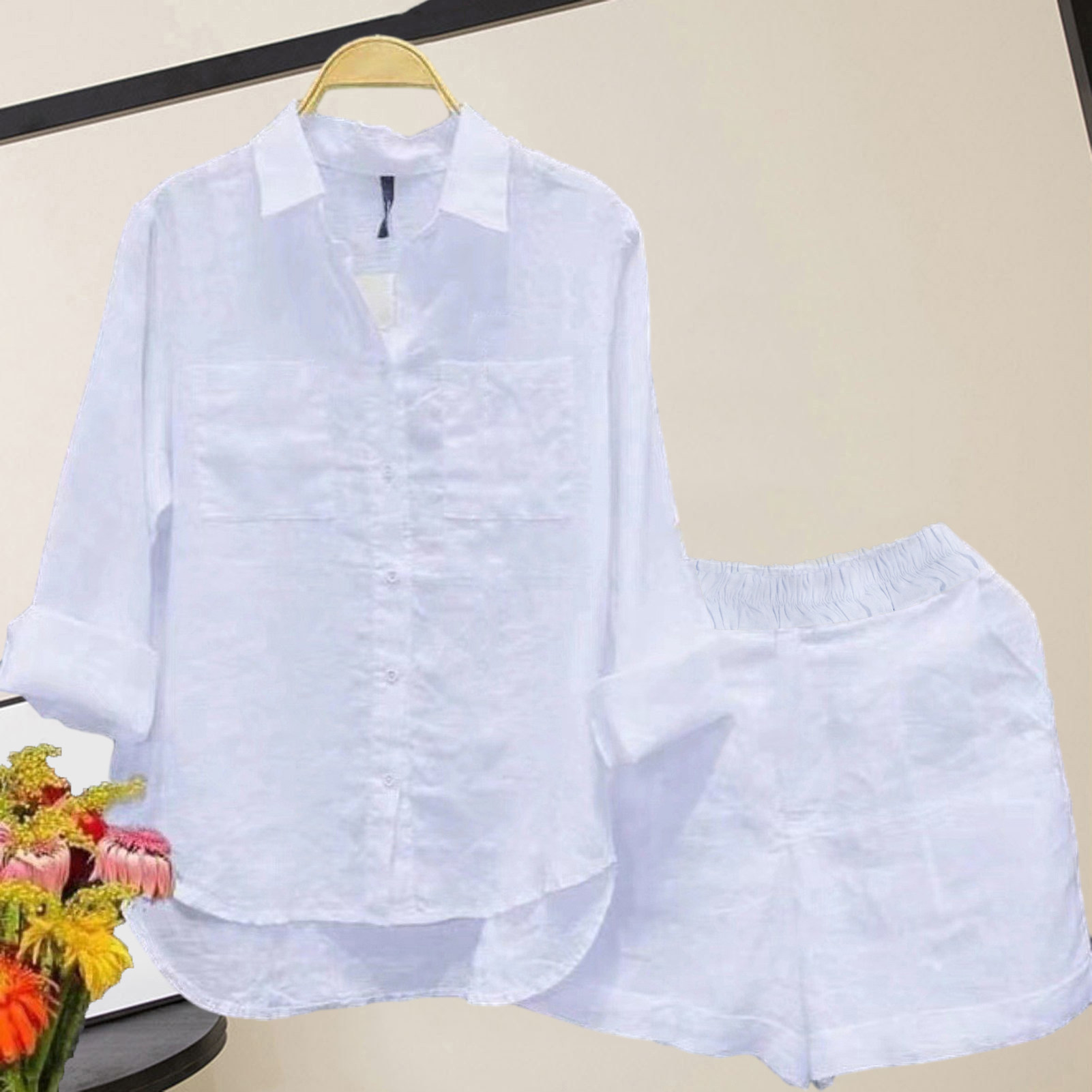 2 шт-шорты для женских рубашек, установите твердый цвет свободные длинные рукава эластичные талию однобортные карманы с нерегулярными лацветами повседневная женская осенняя весна наряд