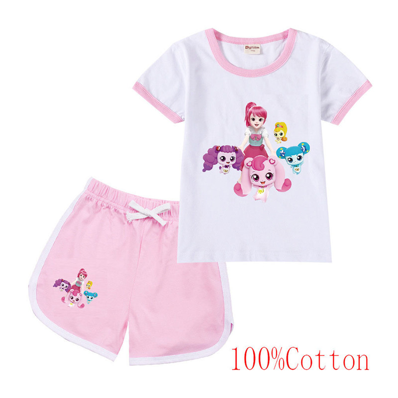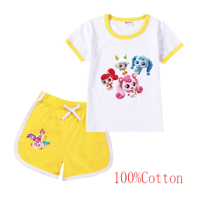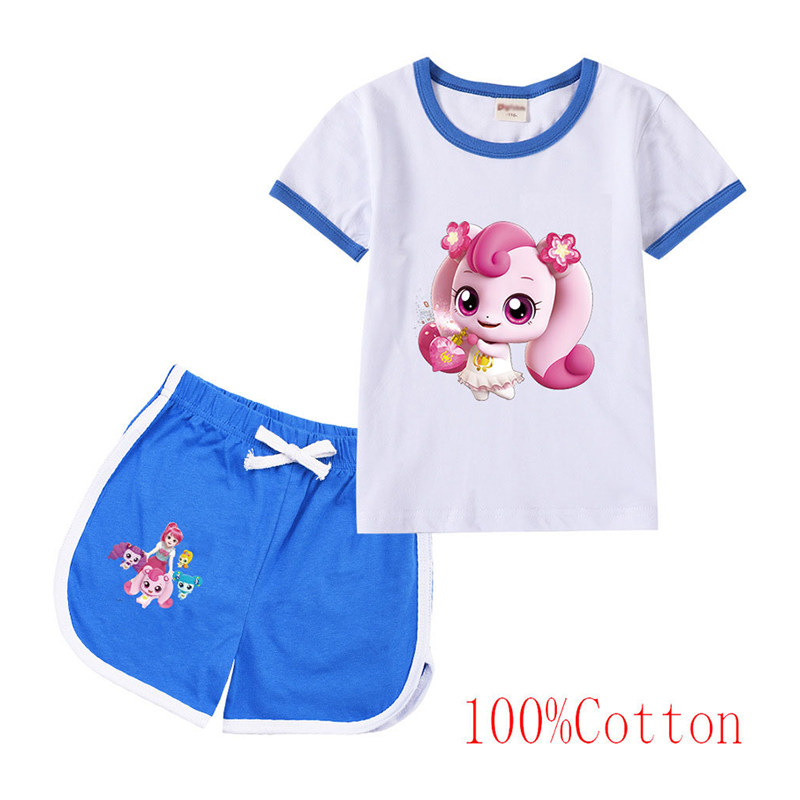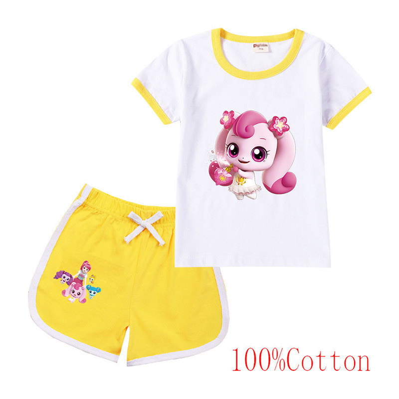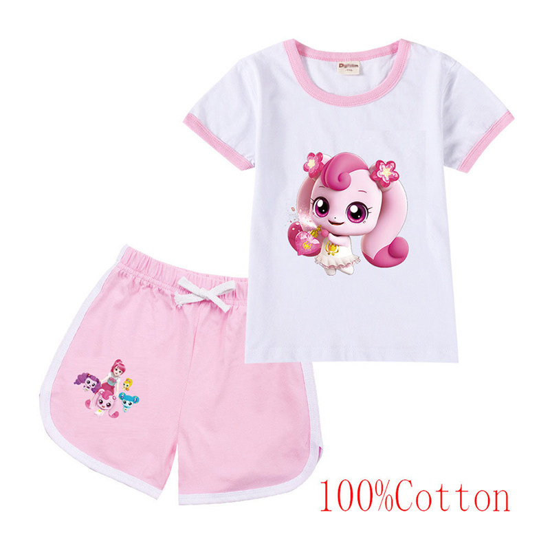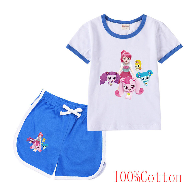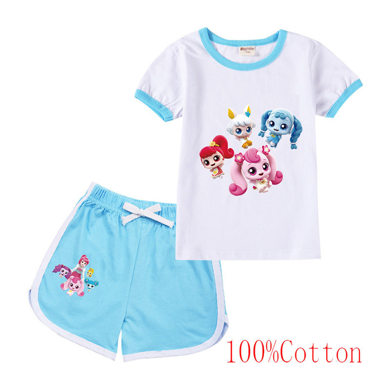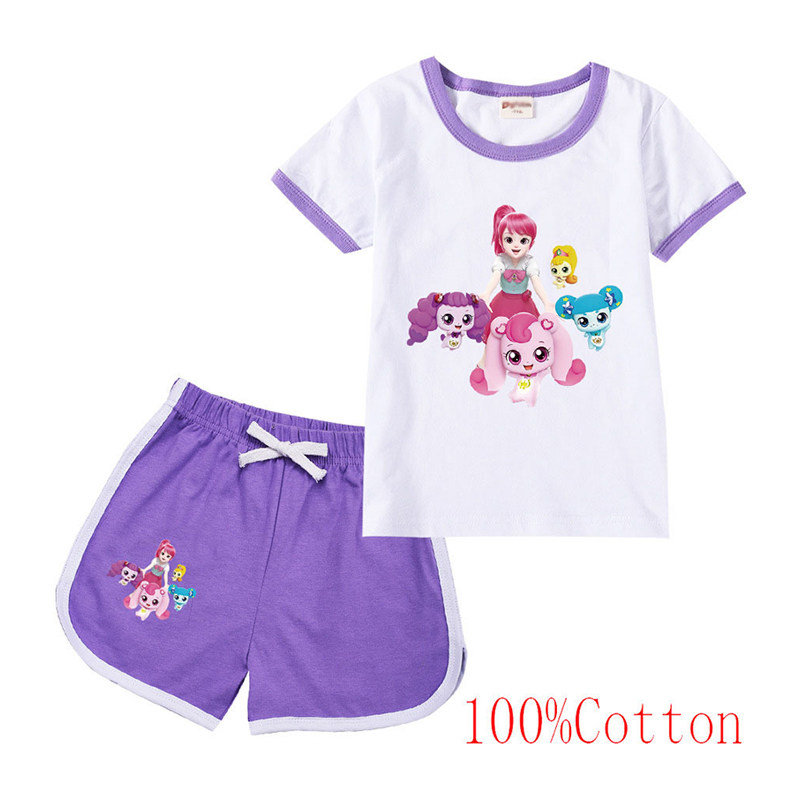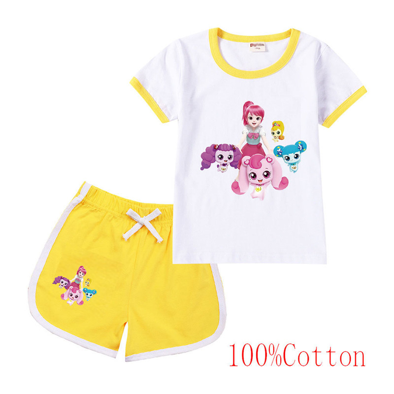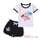 Хлопковая футболка с коротким рукавом, летний мультяшный милый комплект для отдыха