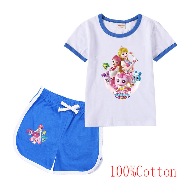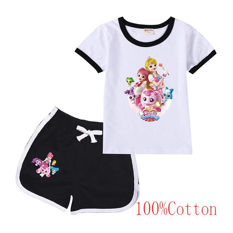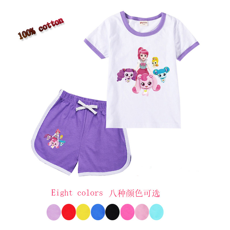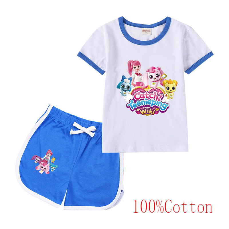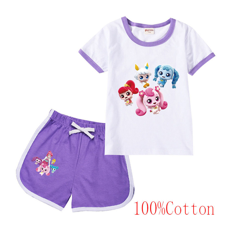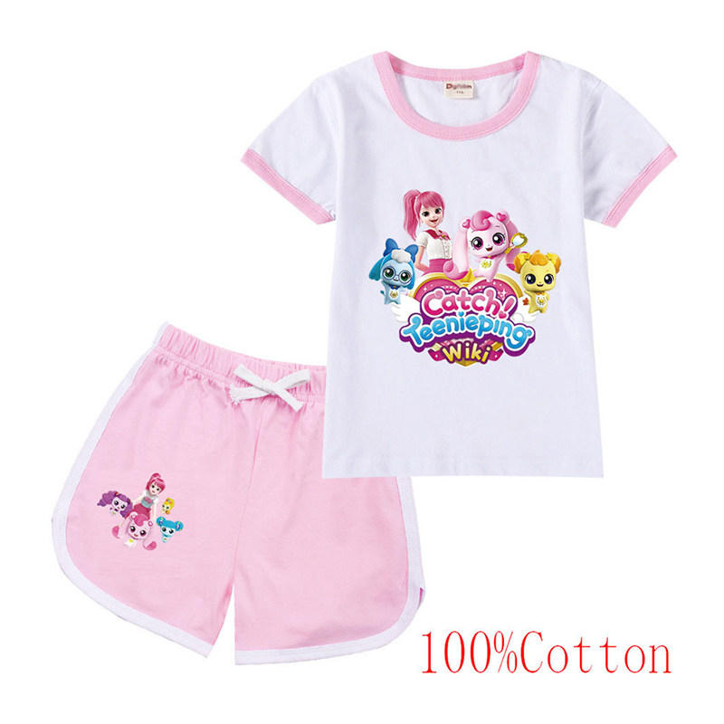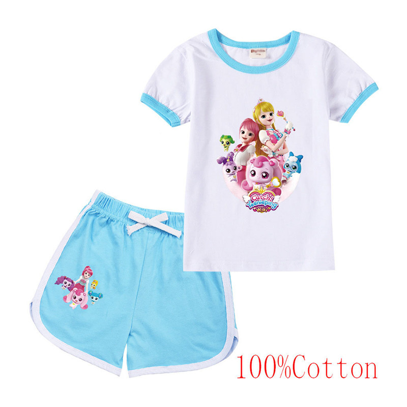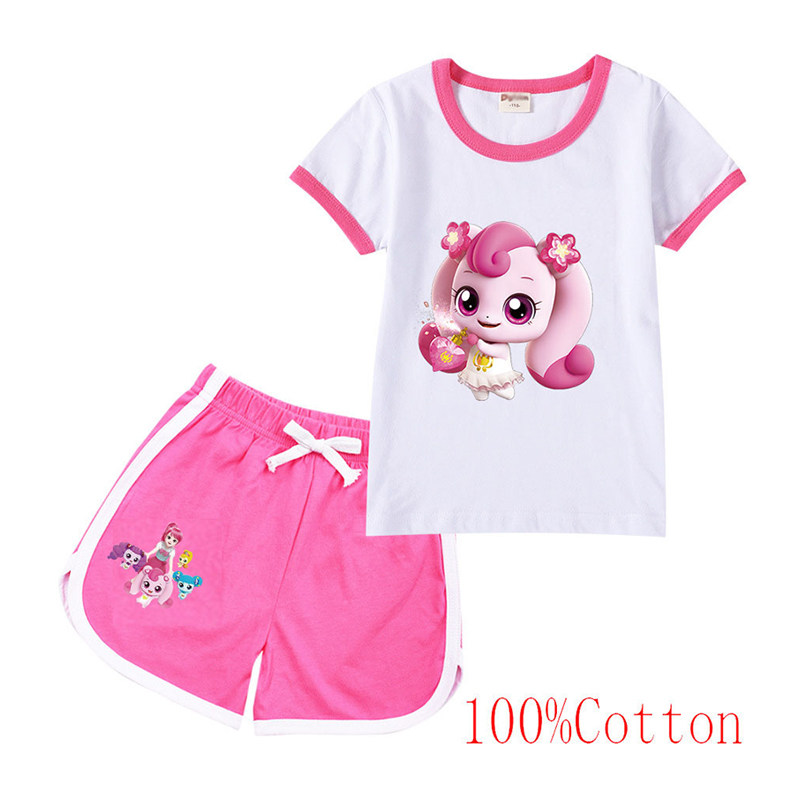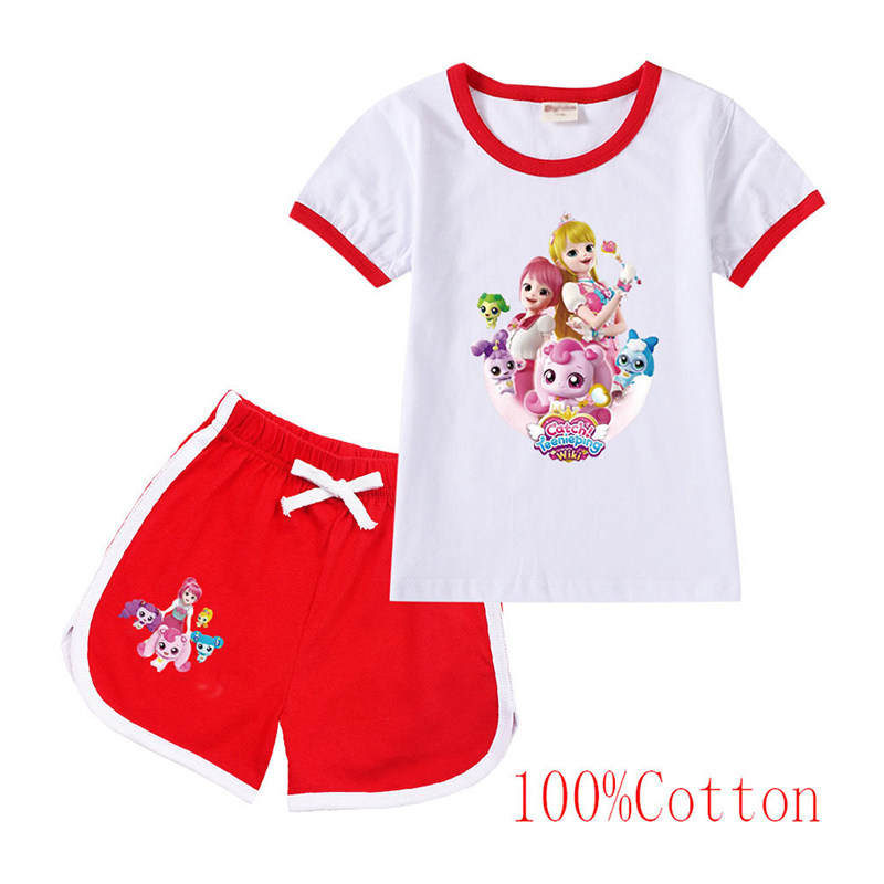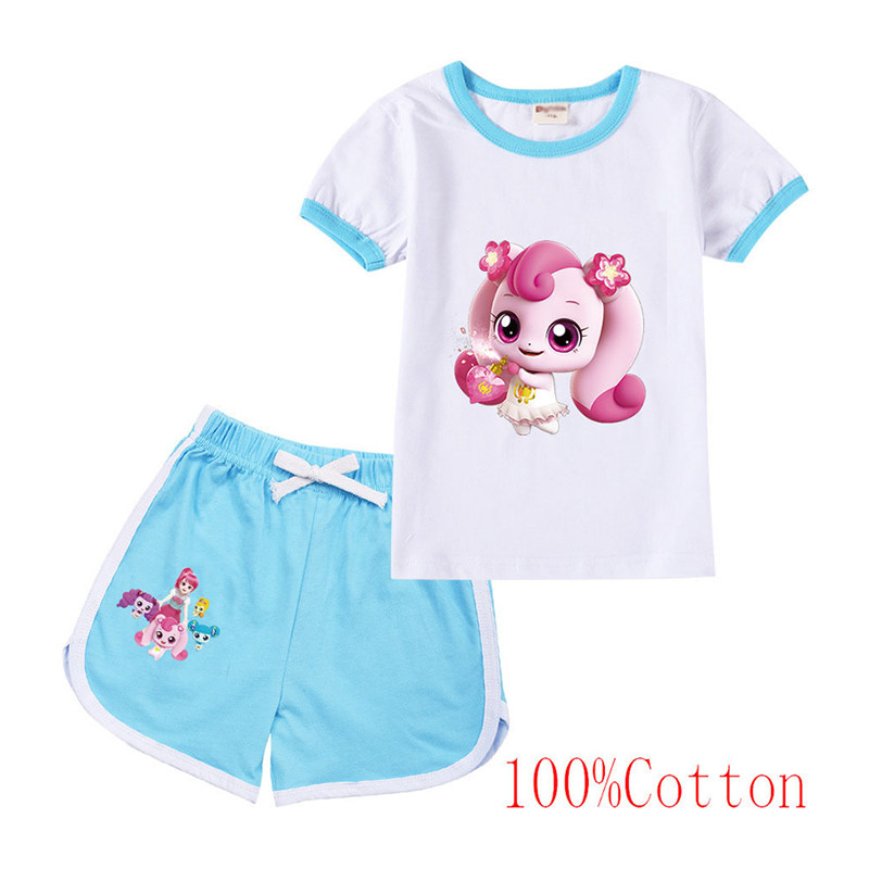 Хлопковая футболка с коротким рукавом, летний мультяшный милый комплект для отдыха