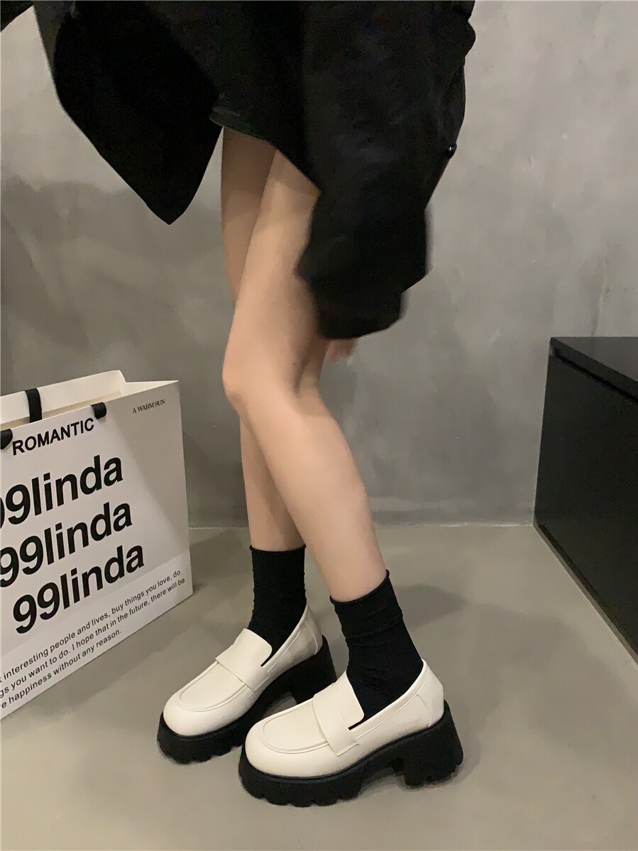 Белые универсальные лоферы в английском стиле для кожаной обуви, обувь на платформе, французский ретро стиль, подходит для подростков