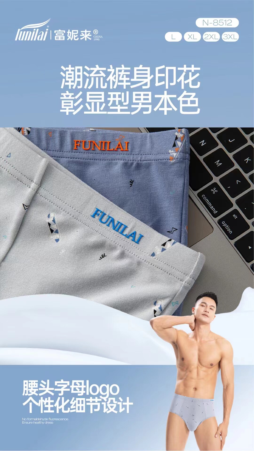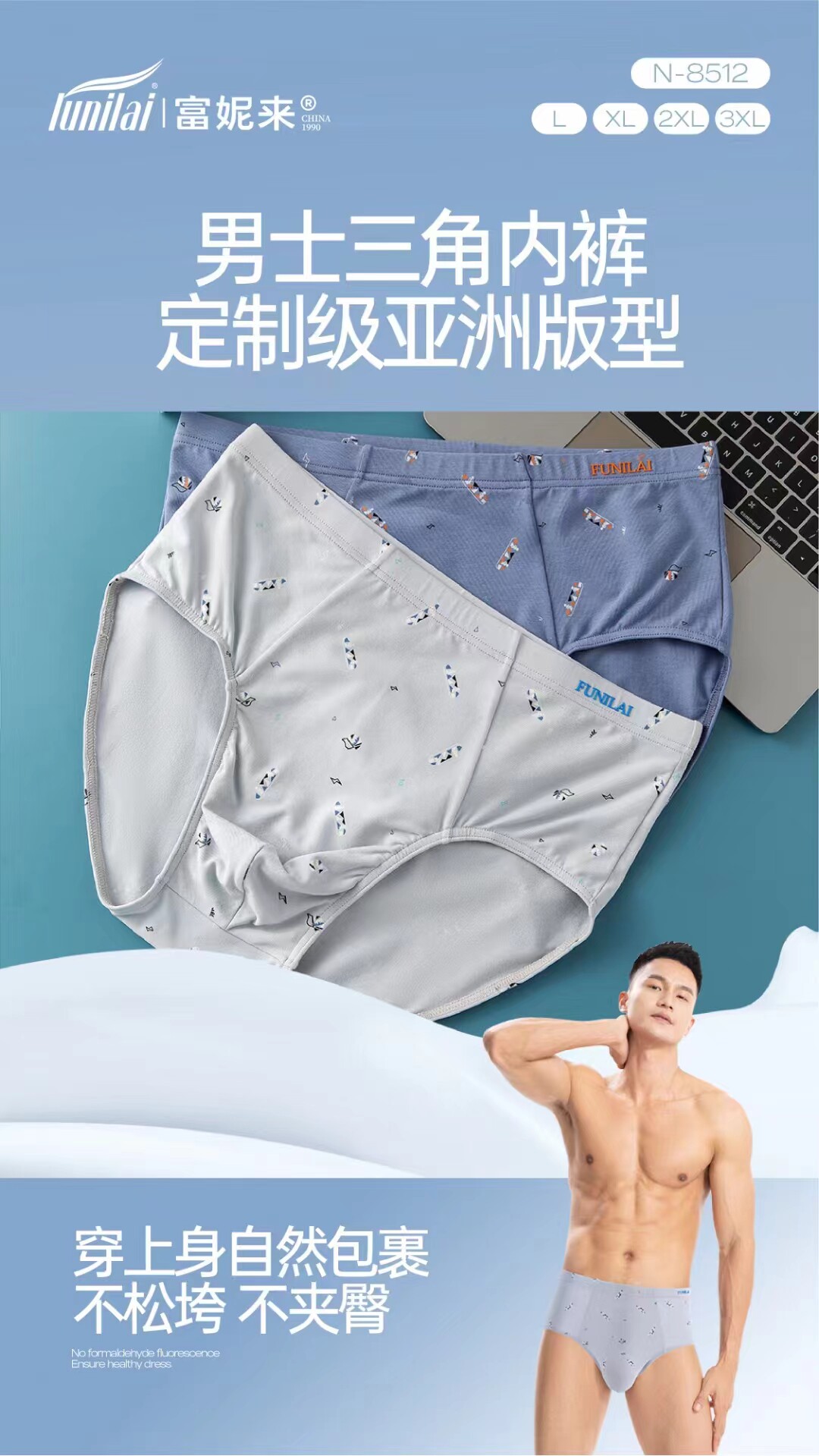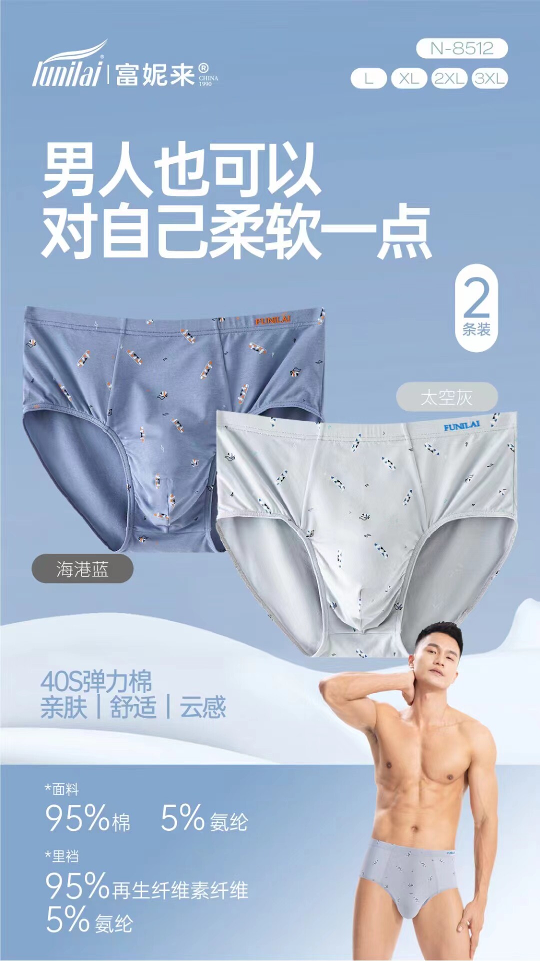 2 пары мужских трусов Funilai 8459 Растяжение хлопка 8458 Pure Cotton 8512 Антибактериальное нижнее белье 8313