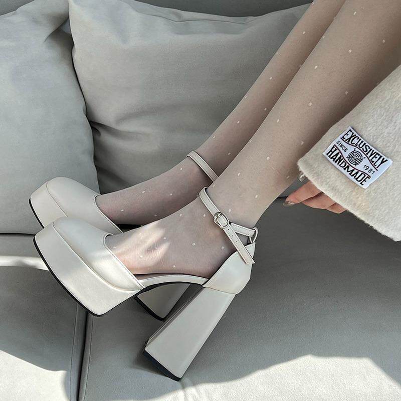 Французские туфли с высокими туфлями белые ботинки Барби сладкий сказочный пирог дно увеличить густой каблук.