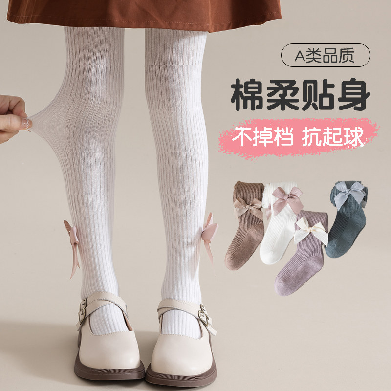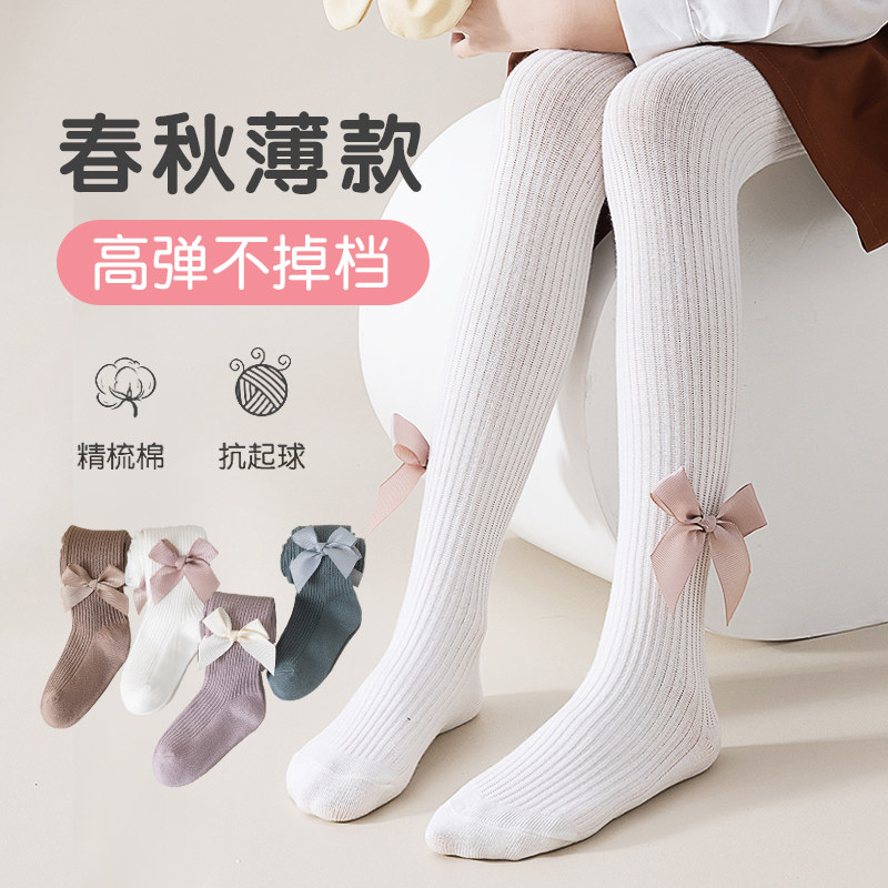 Осенние тонкие колготки, хлопковые детские белые демисезонные леггинсы, в западном стиле