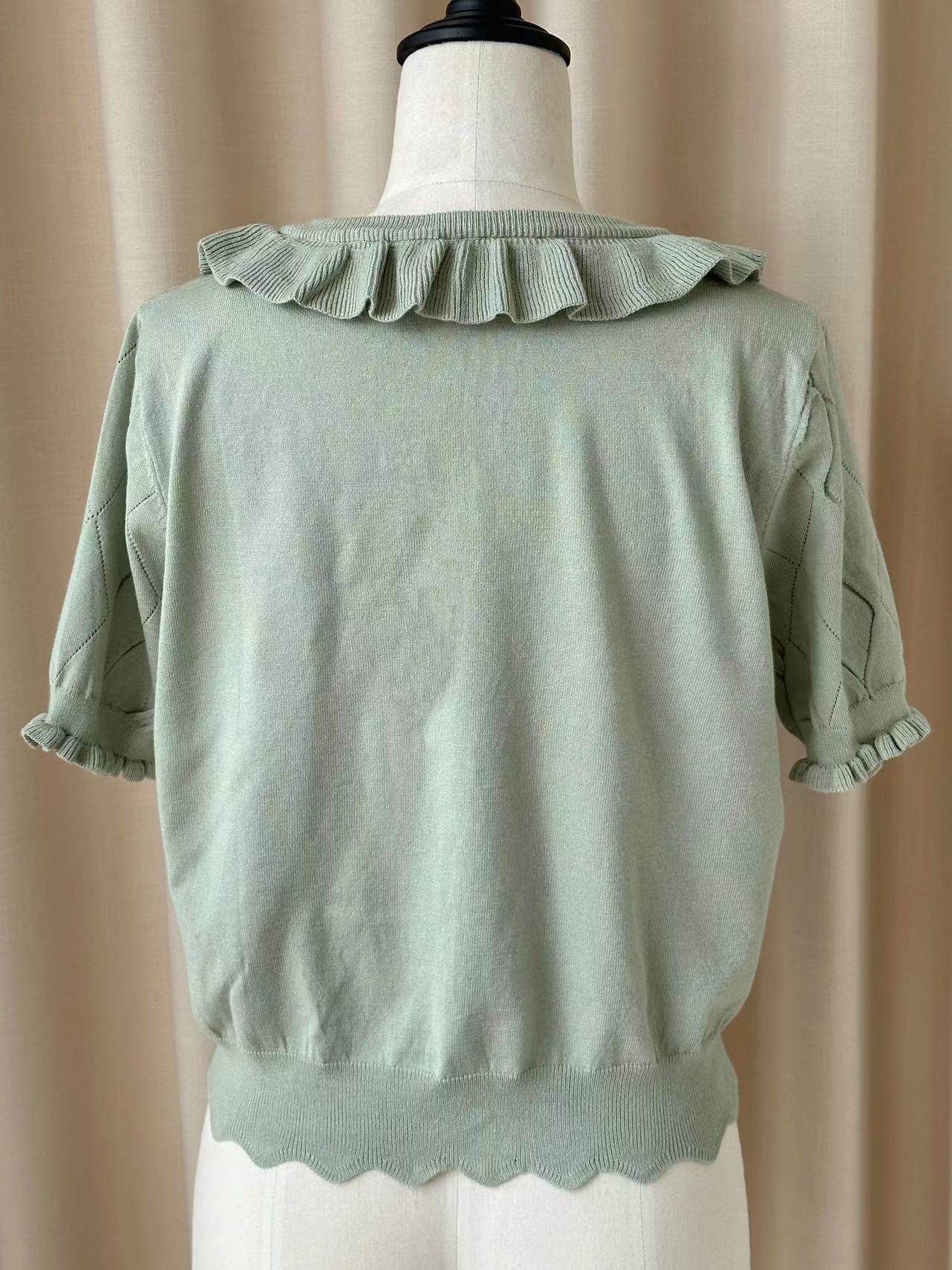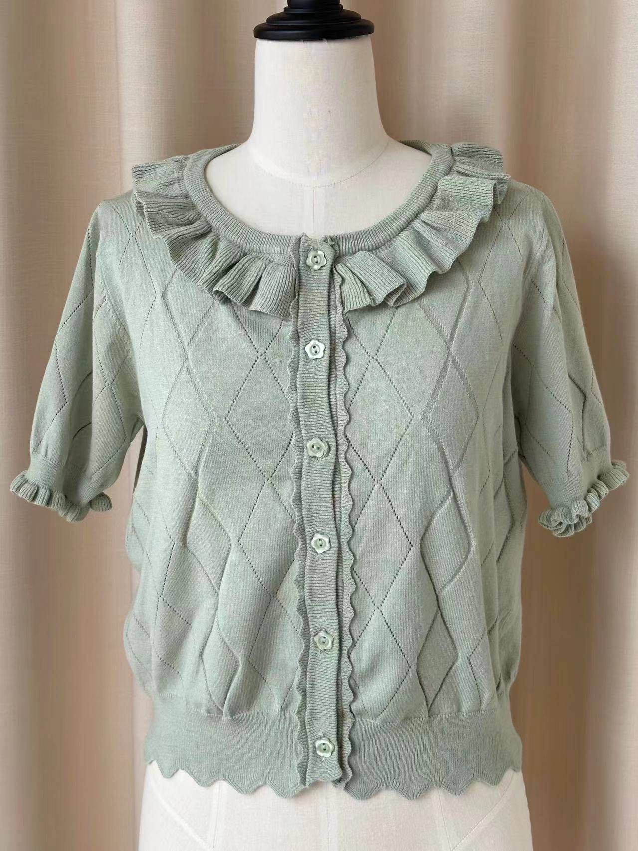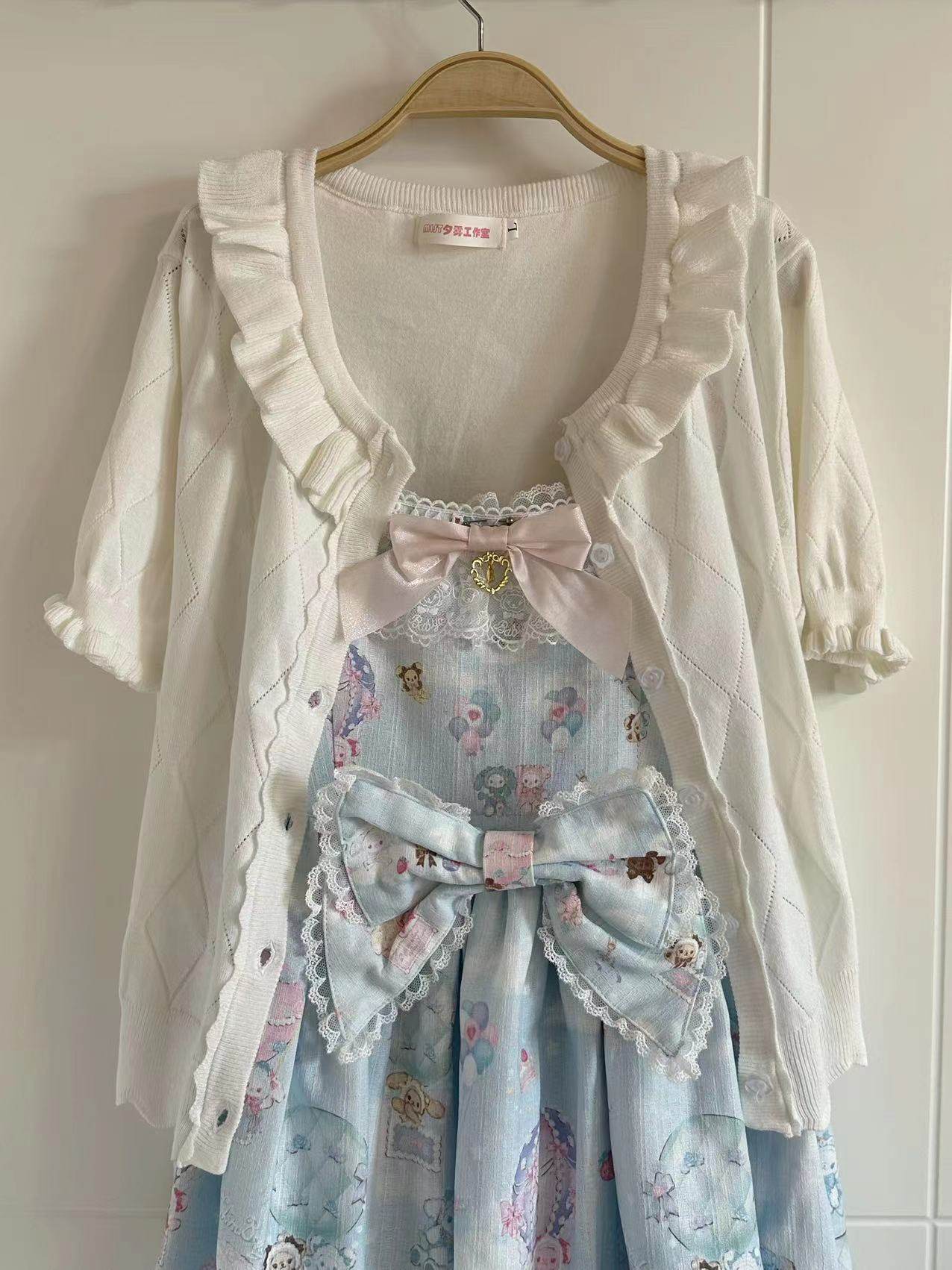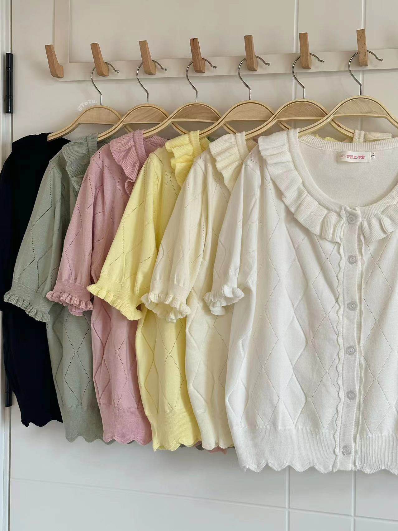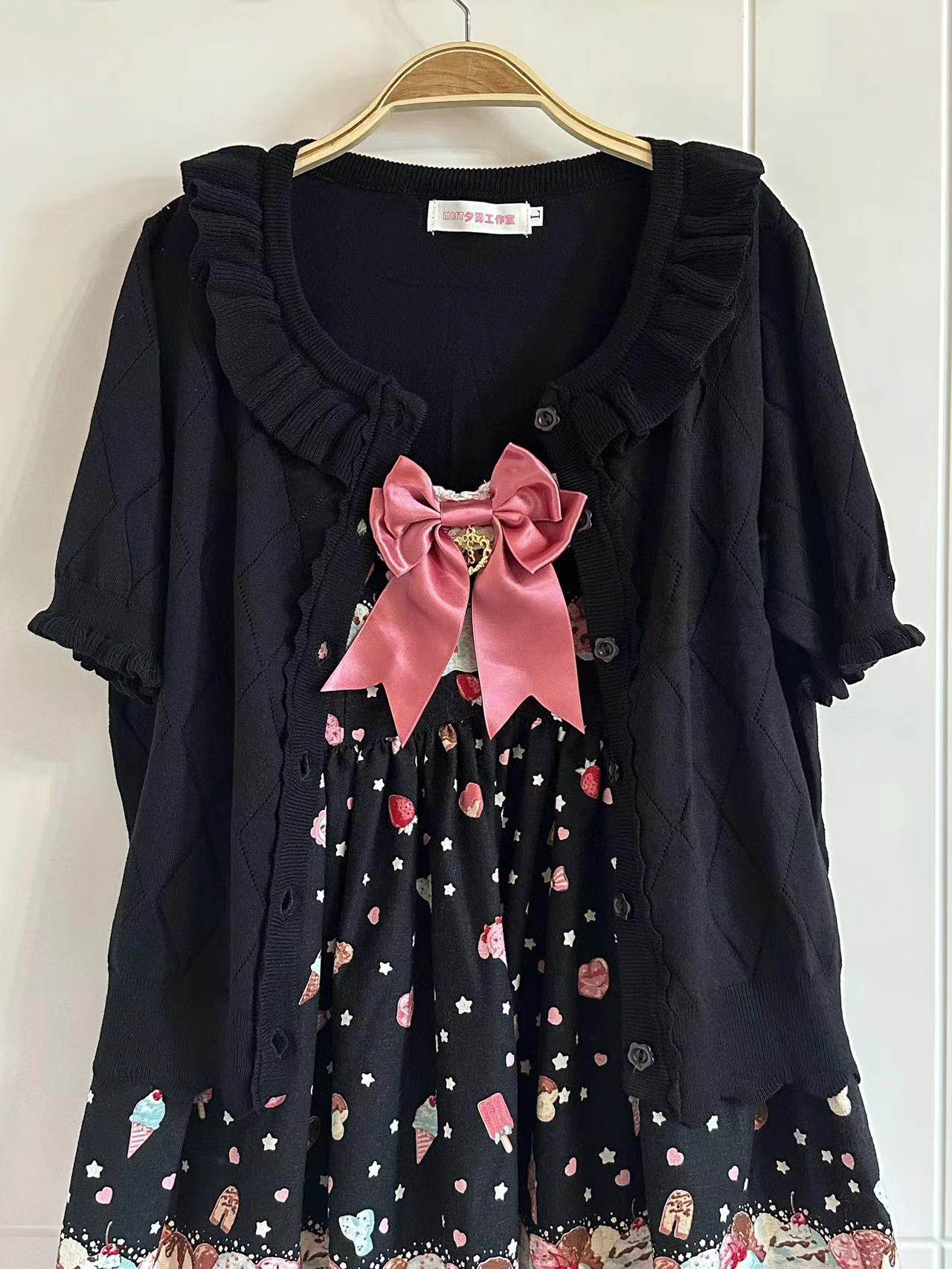 Оригинальная трикотажная рубашка в стиле «сладкая Лолита» с короткими рукавами и тонким полым ледяным шелком, открытая рубашка с открытыми плечами и сладким грибком.