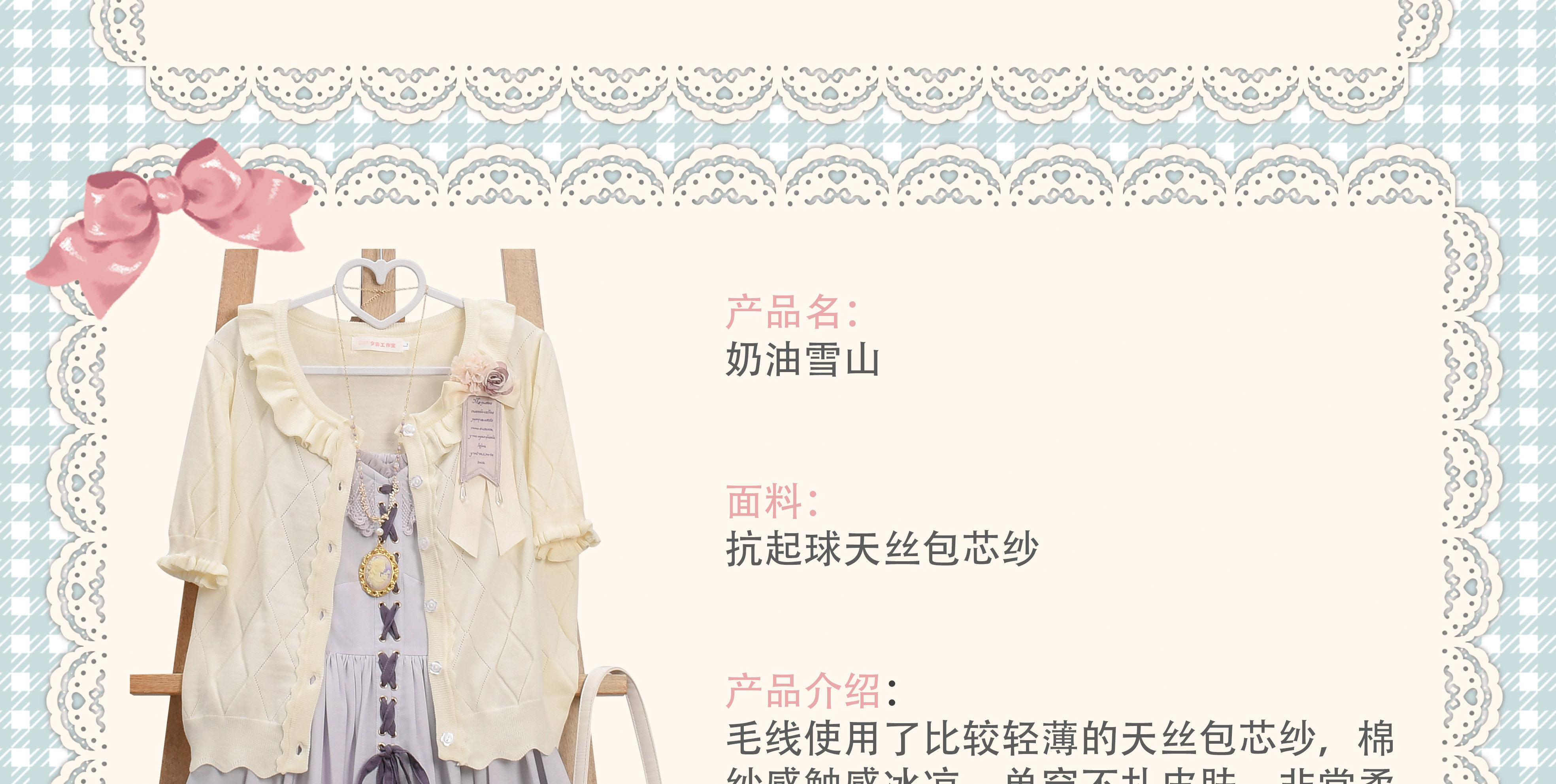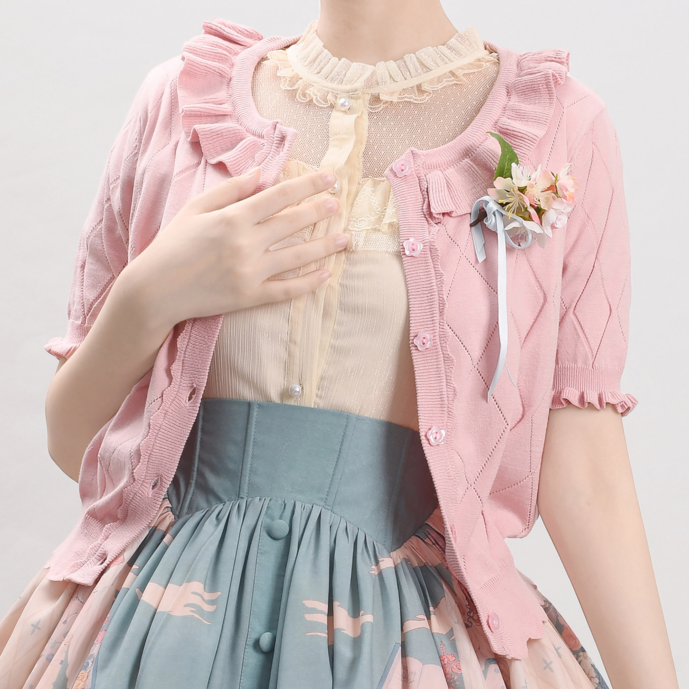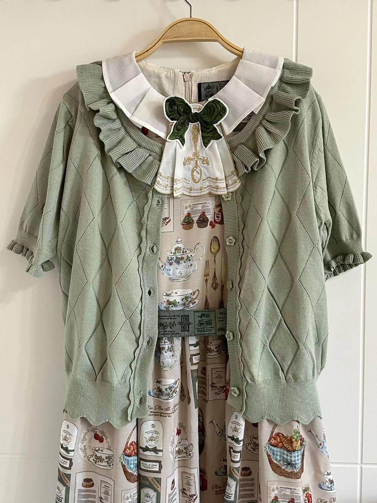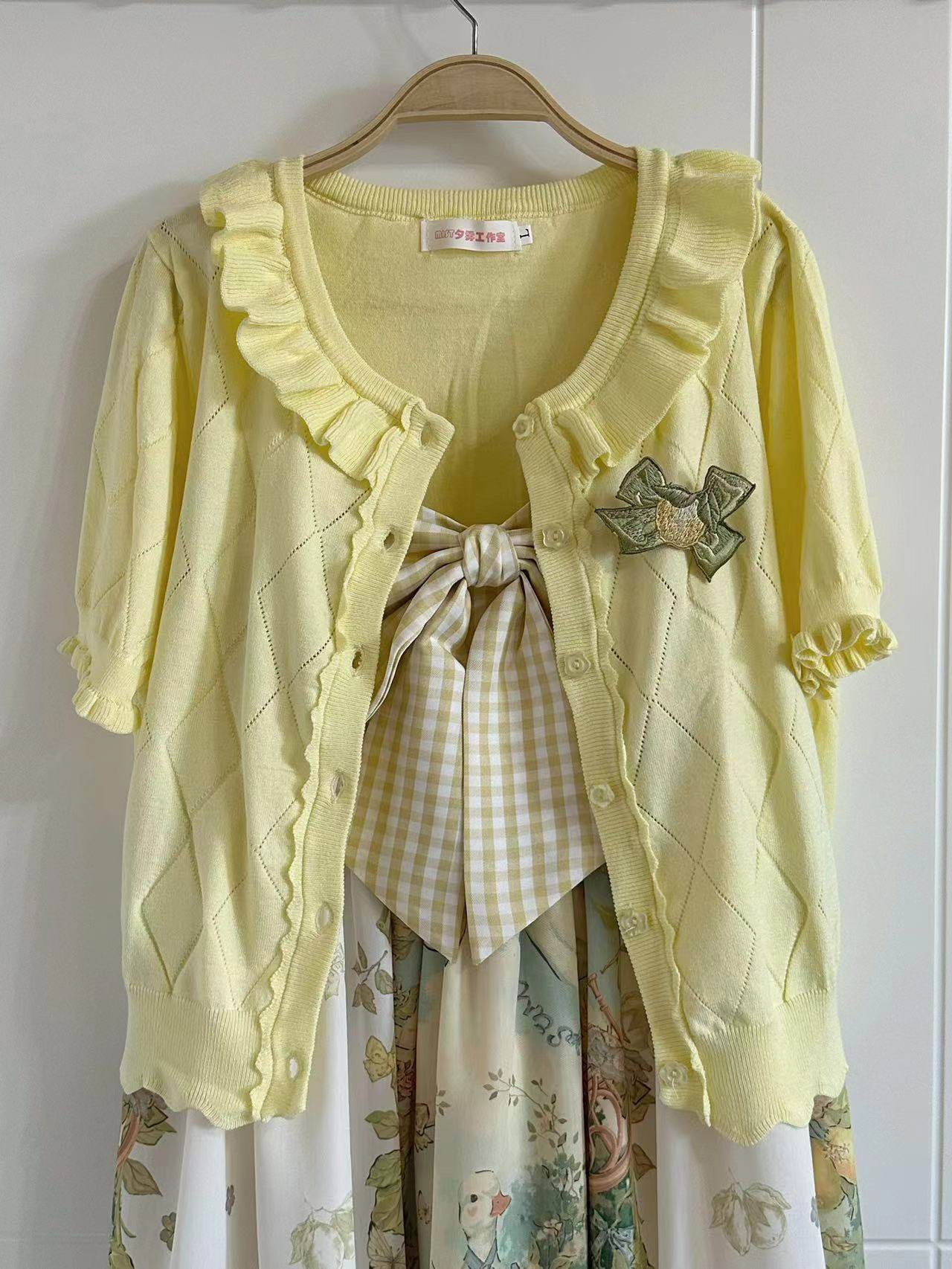 Оригинальная трикотажная рубашка в стиле «сладкая Лолита» с короткими рукавами и тонким полым ледяным шелком, открытая рубашка с открытыми плечами и сладким грибком.