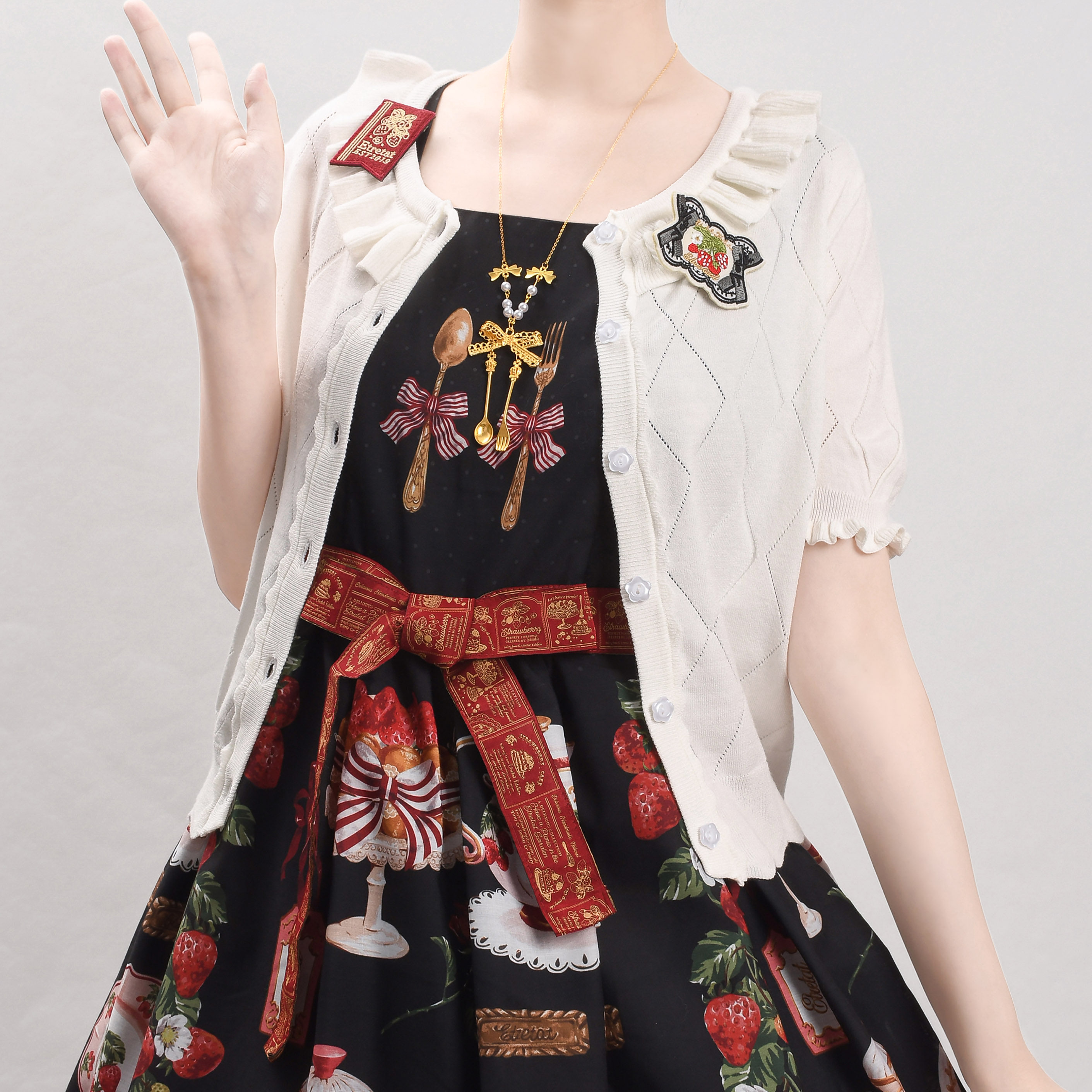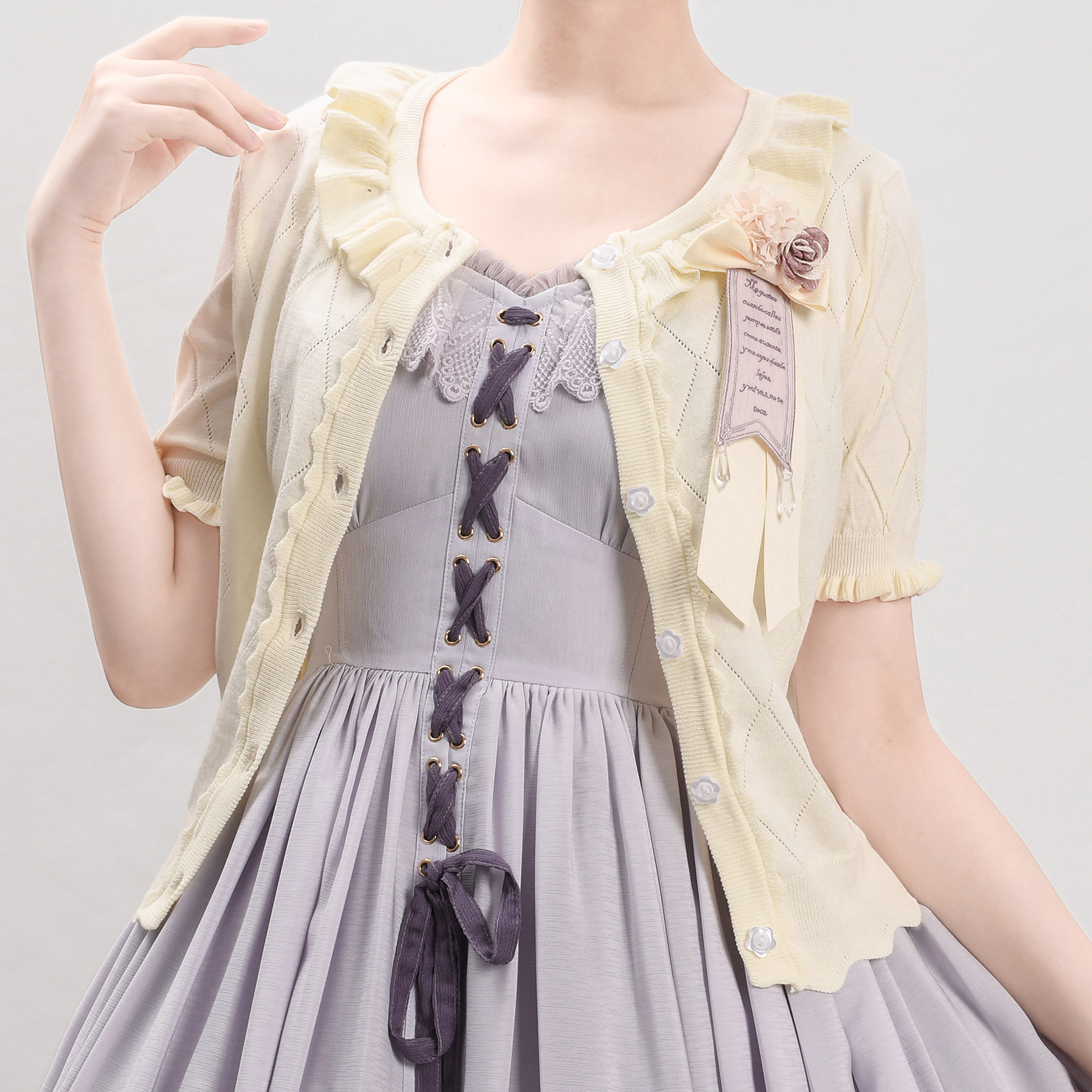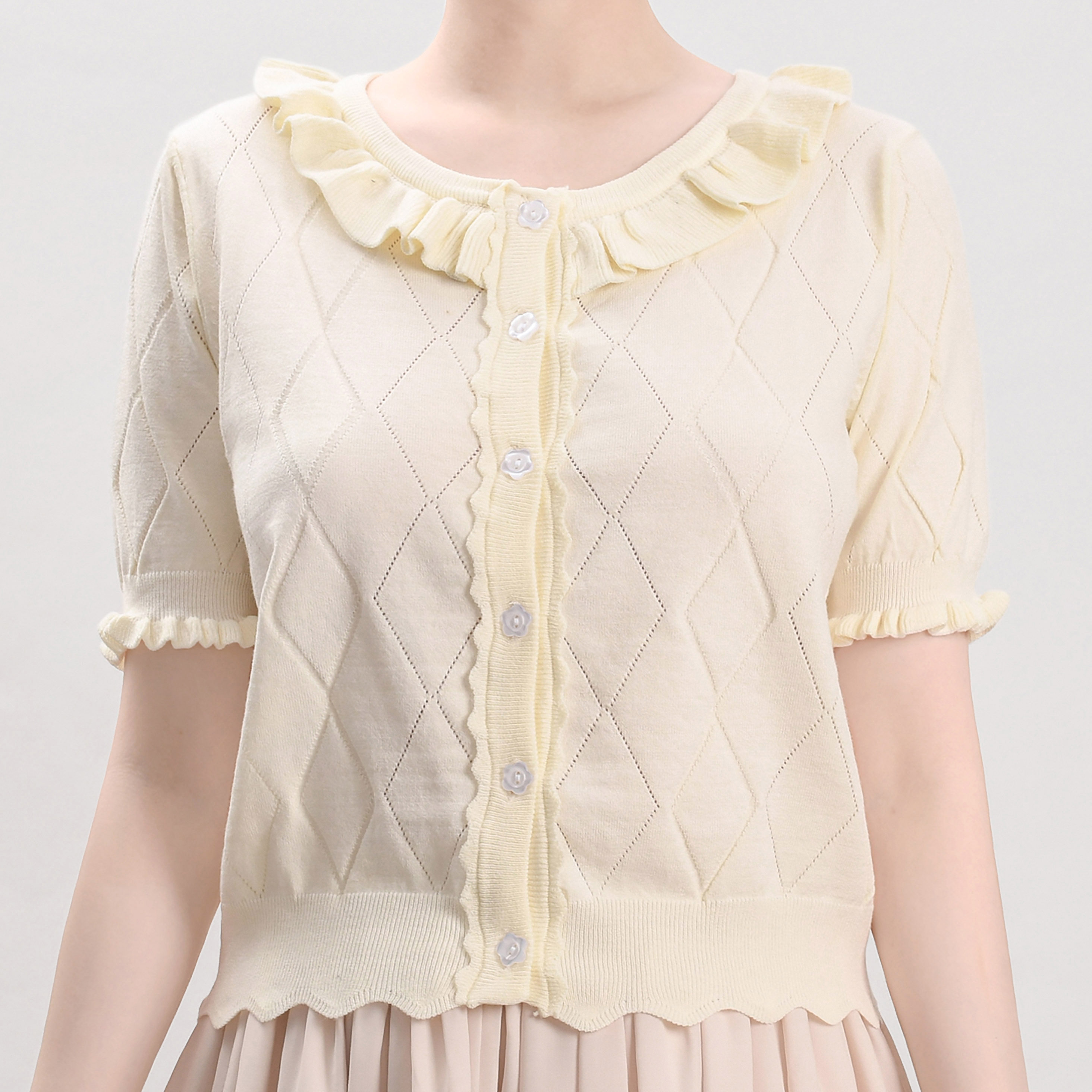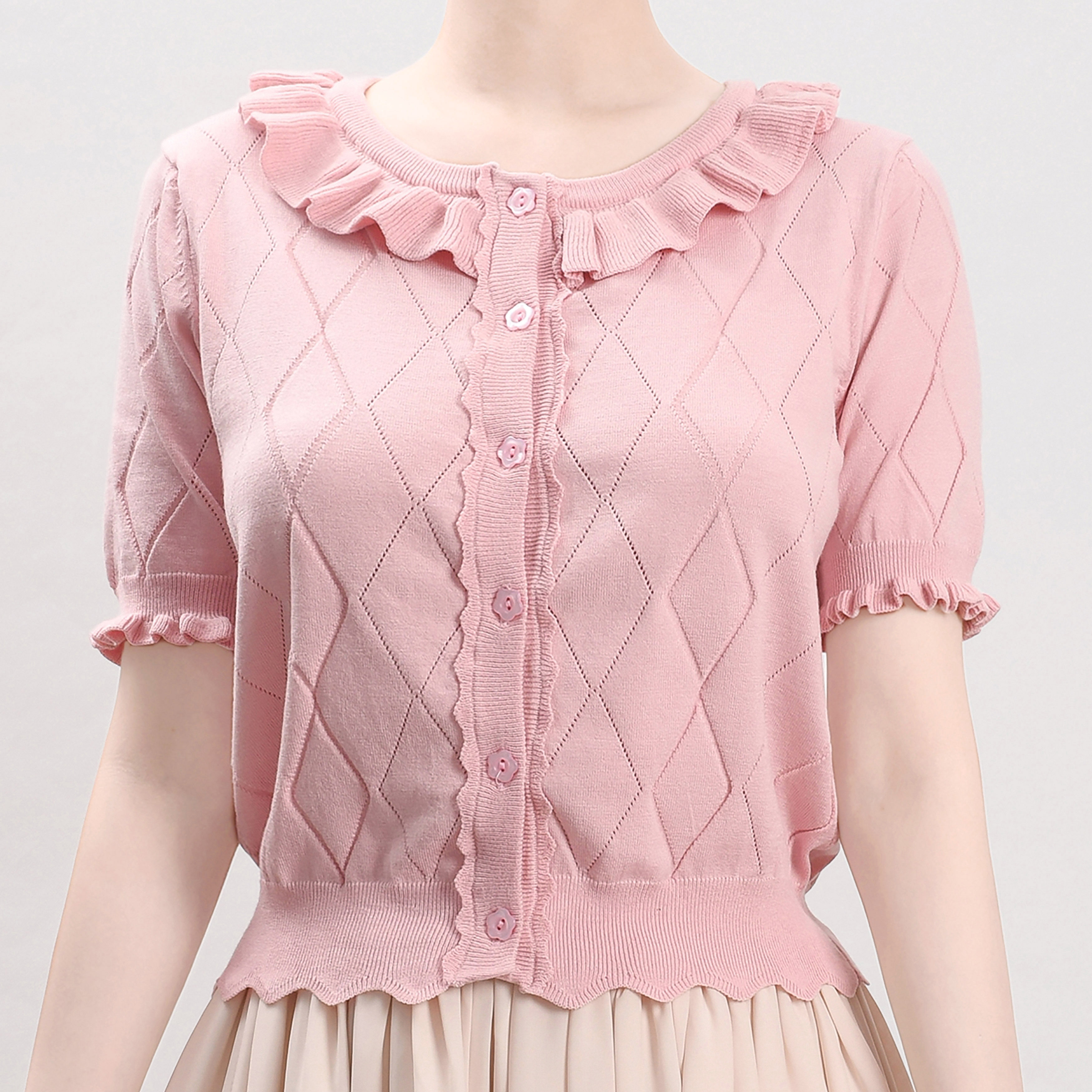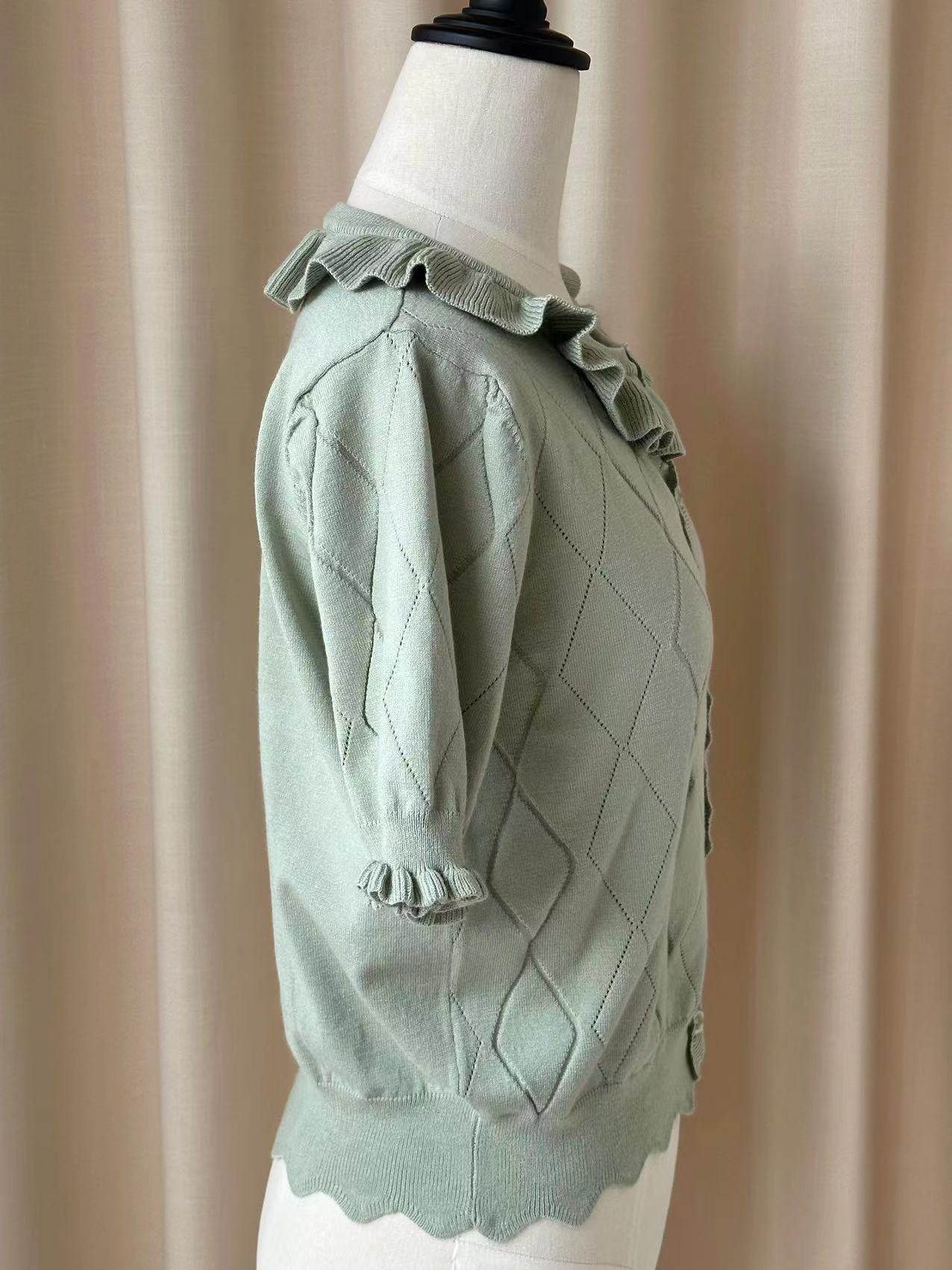 Оригинальная трикотажная рубашка в стиле «сладкая Лолита» с короткими рукавами и тонким полым ледяным шелком, открытая рубашка с открытыми плечами и сладким грибком.