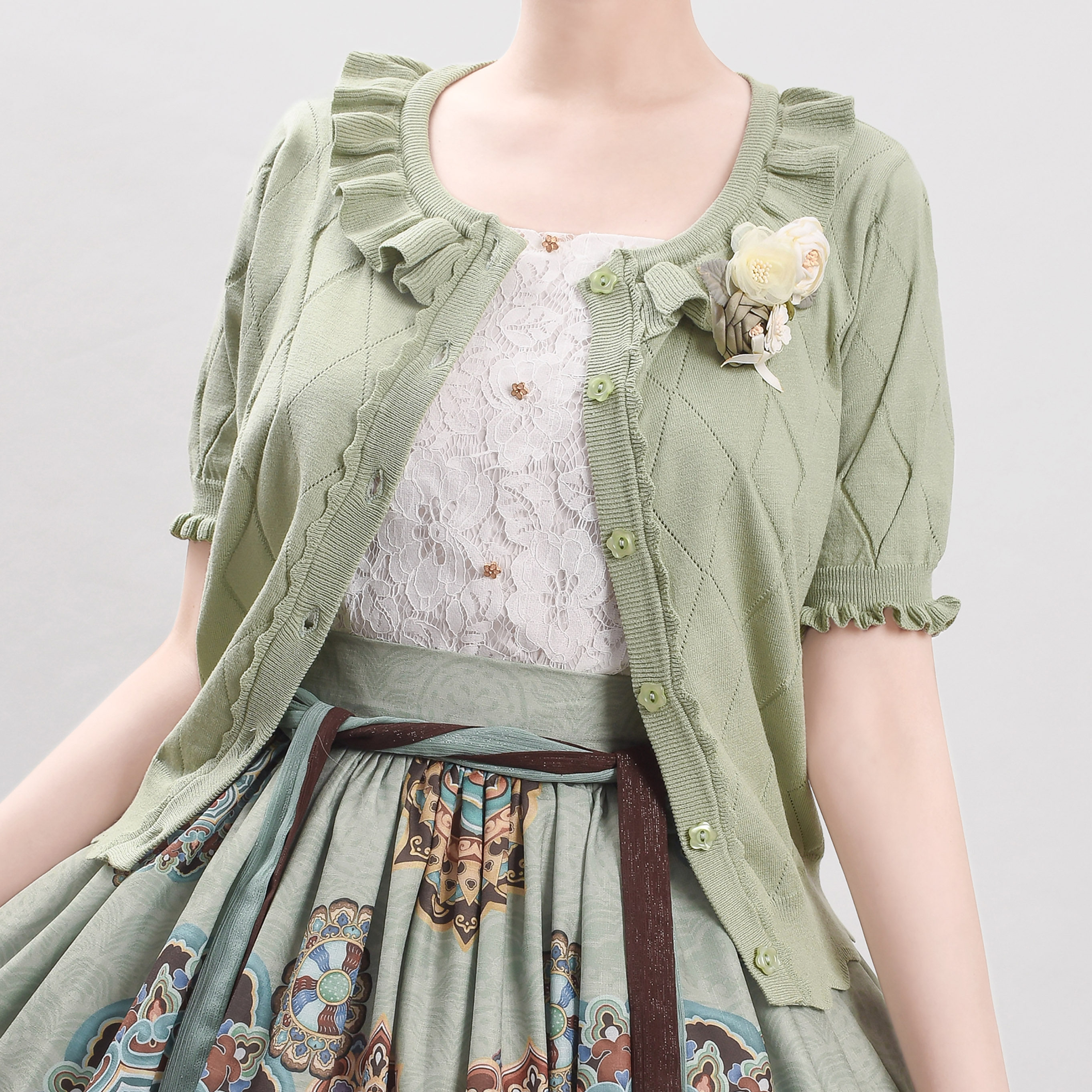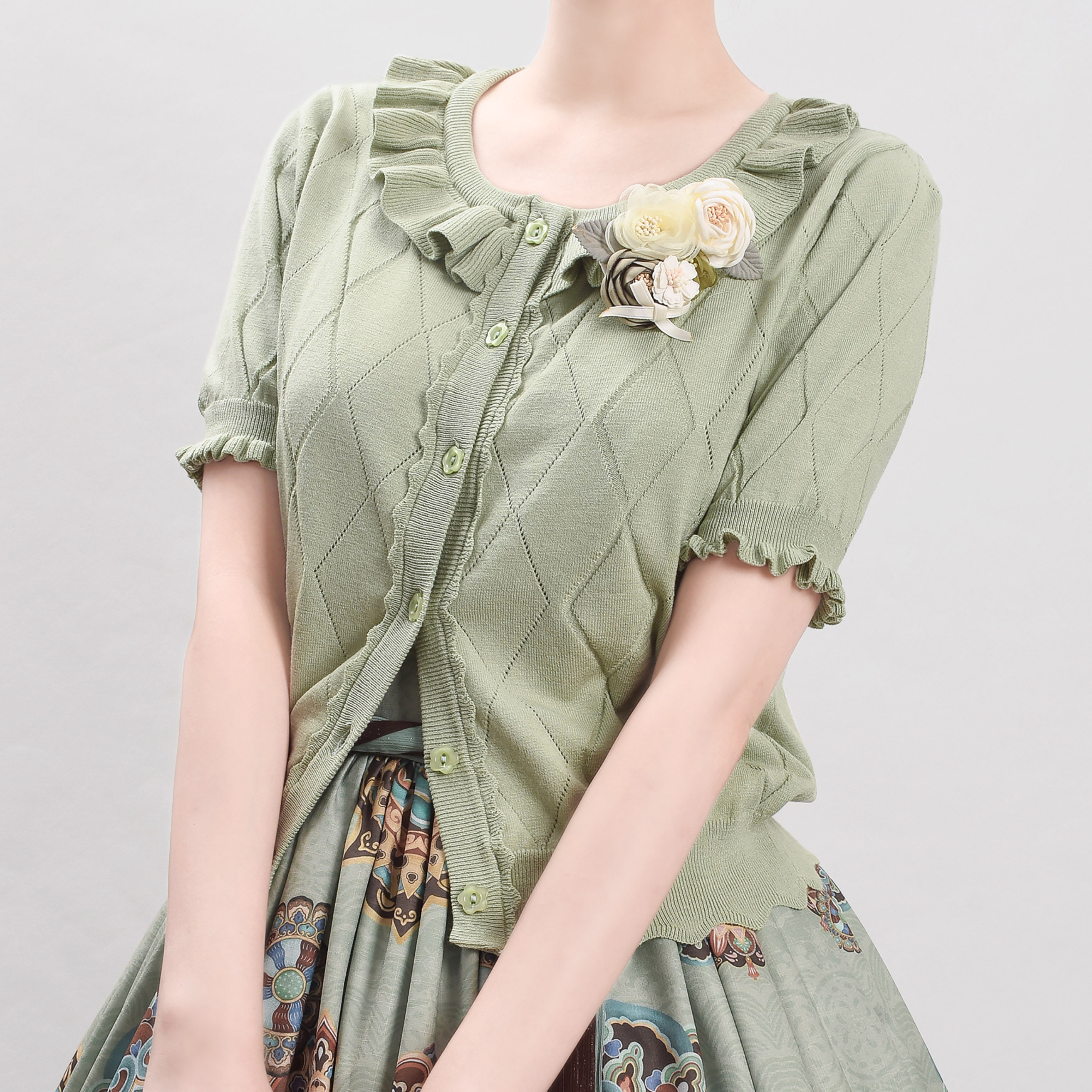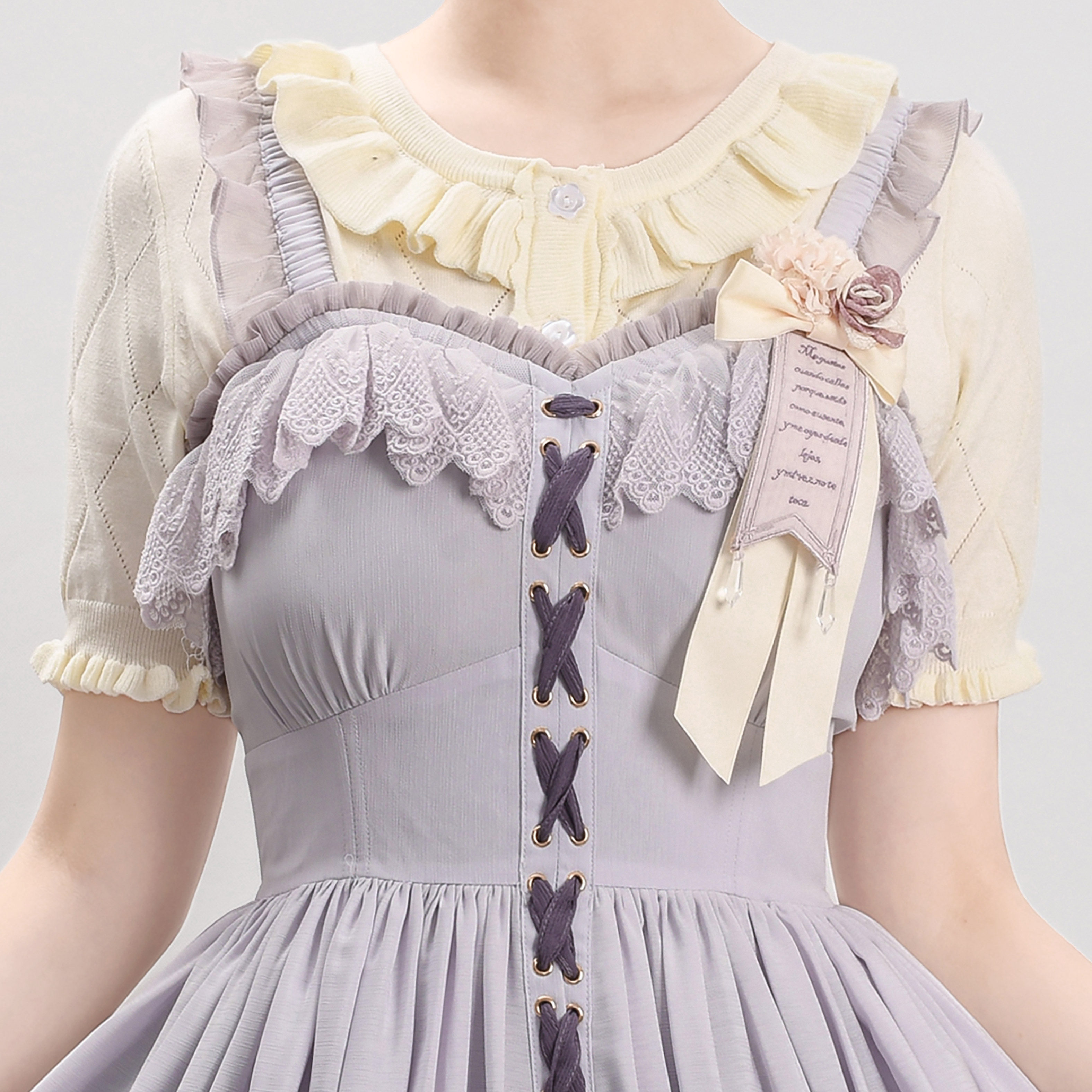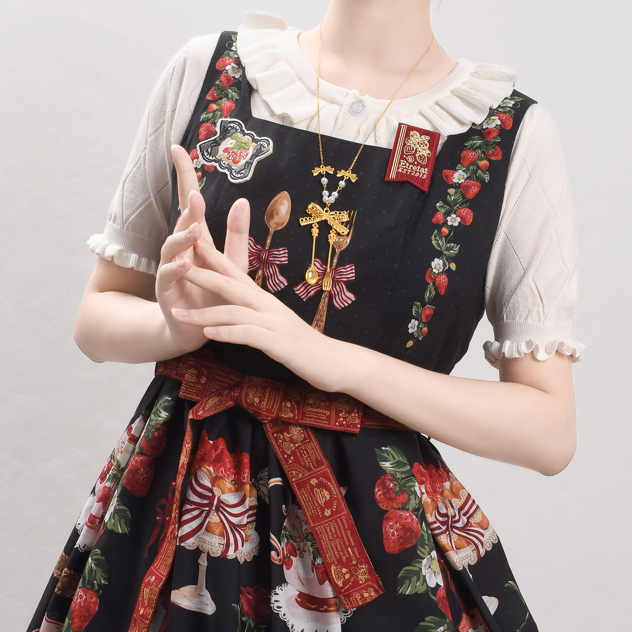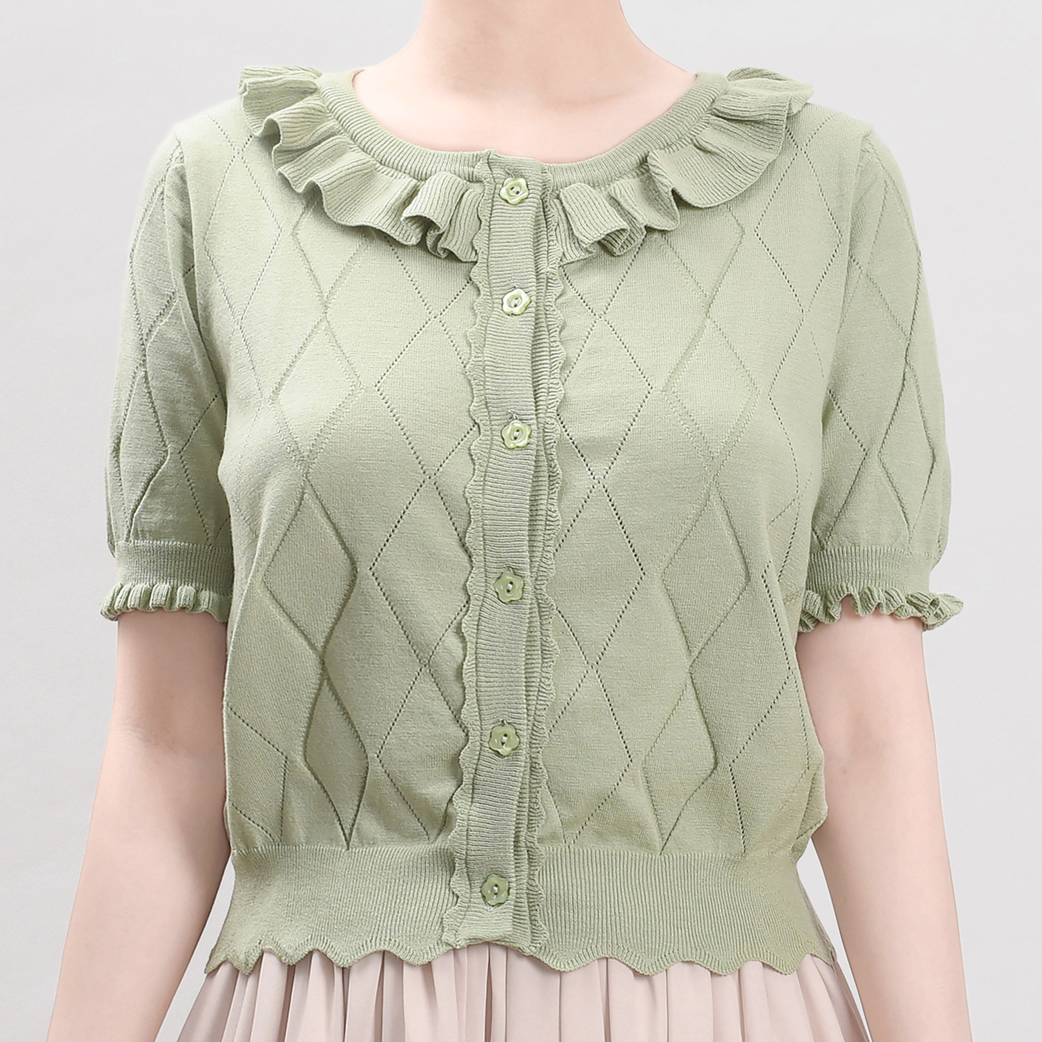 Оригинальная трикотажная рубашка в стиле «сладкая Лолита» с короткими рукавами и тонким полым ледяным шелком, открытая рубашка с открытыми плечами и сладким грибком.