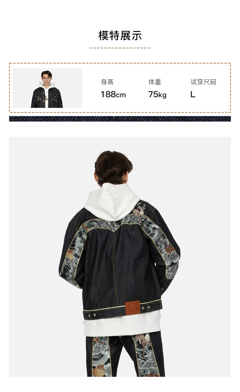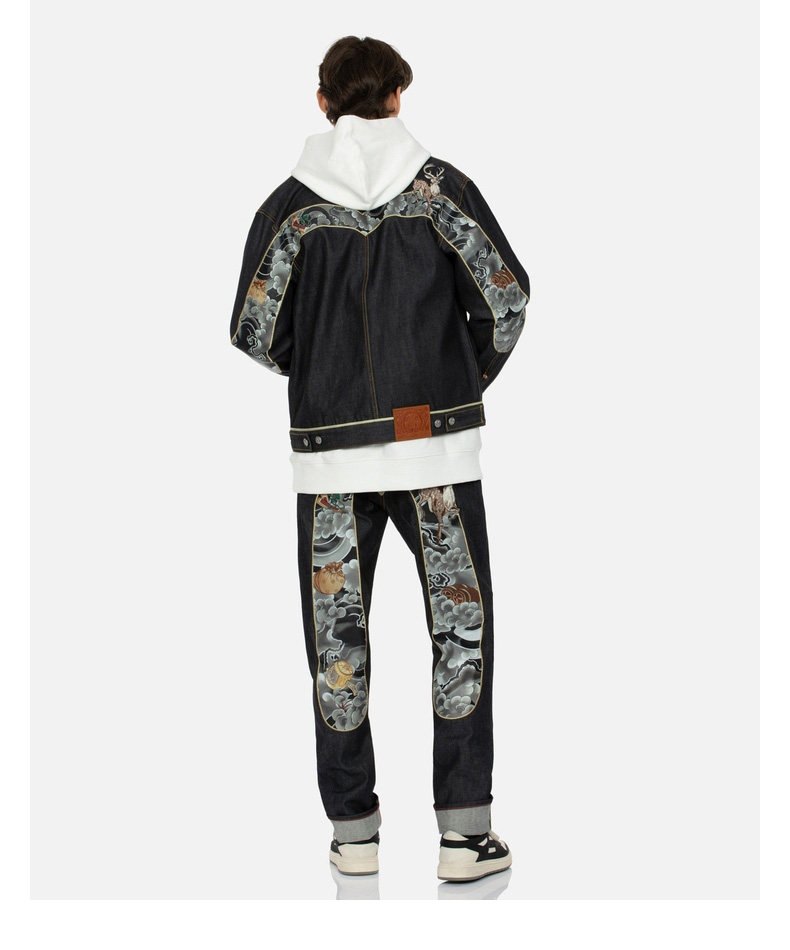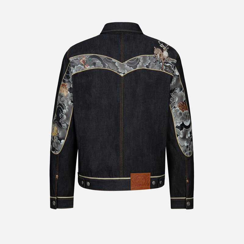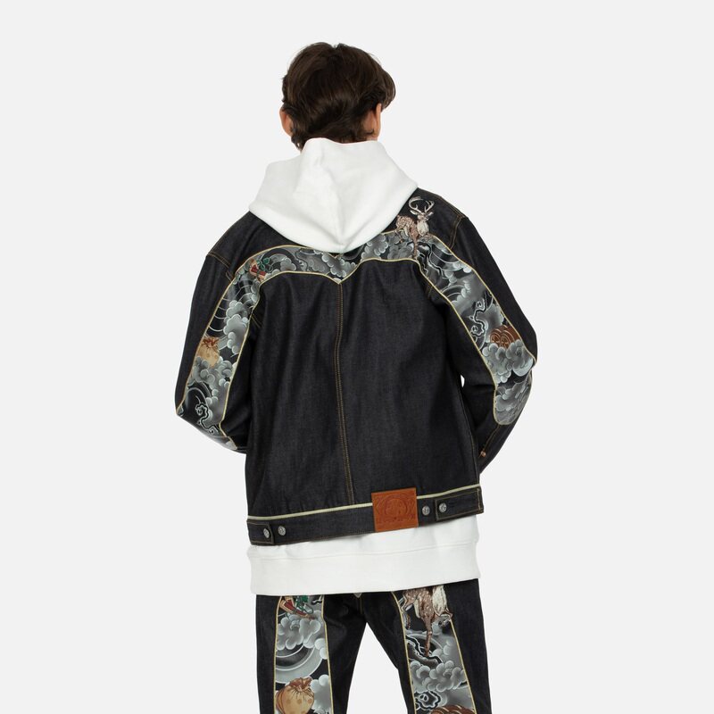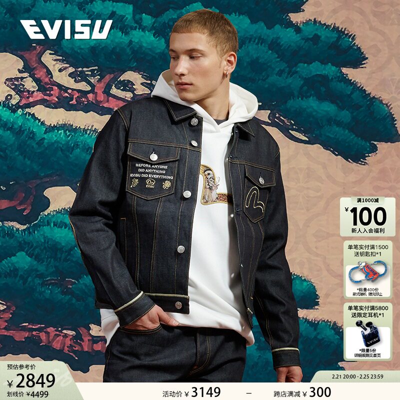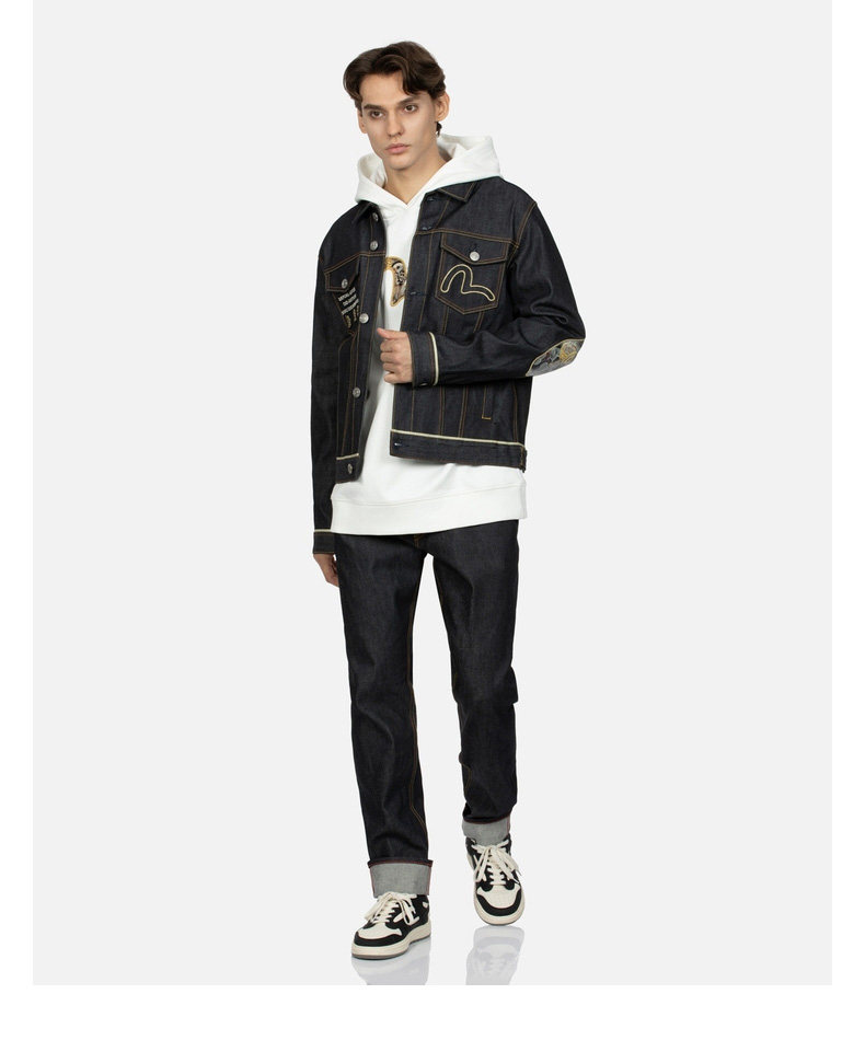 Evisu Men's Fusulu Treasure Big M Печать и быстрая джинсовая куртка 2EAHTM3DJ7006XXCS
