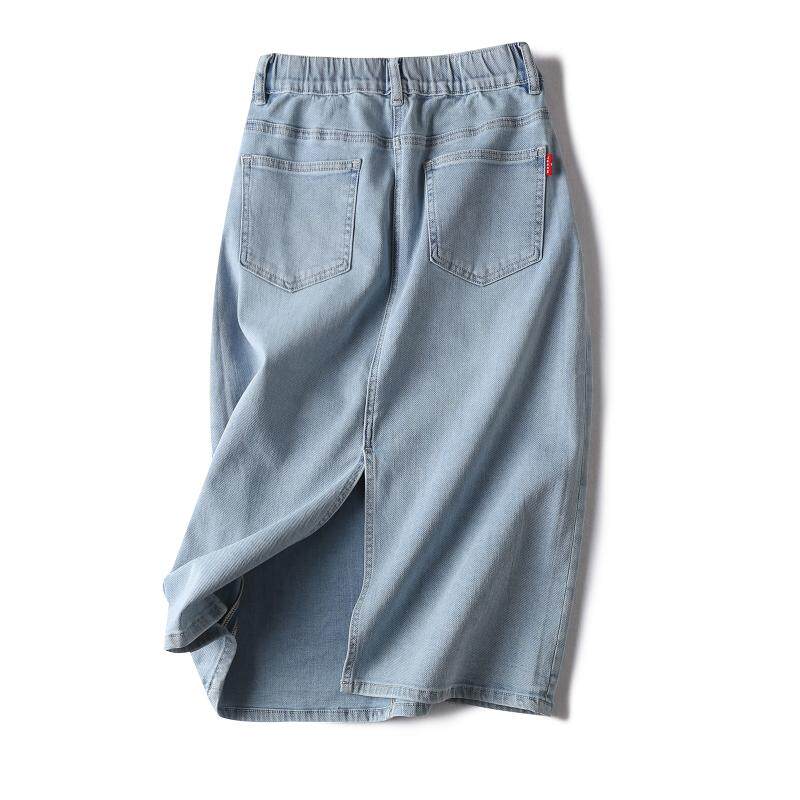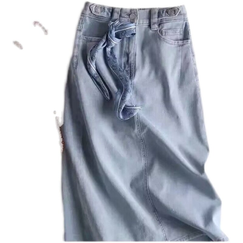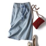 Брендовая джинсовая приталенная лента, универсальная джинсовая юбка, А-силуэт, с акцентом на бедрах