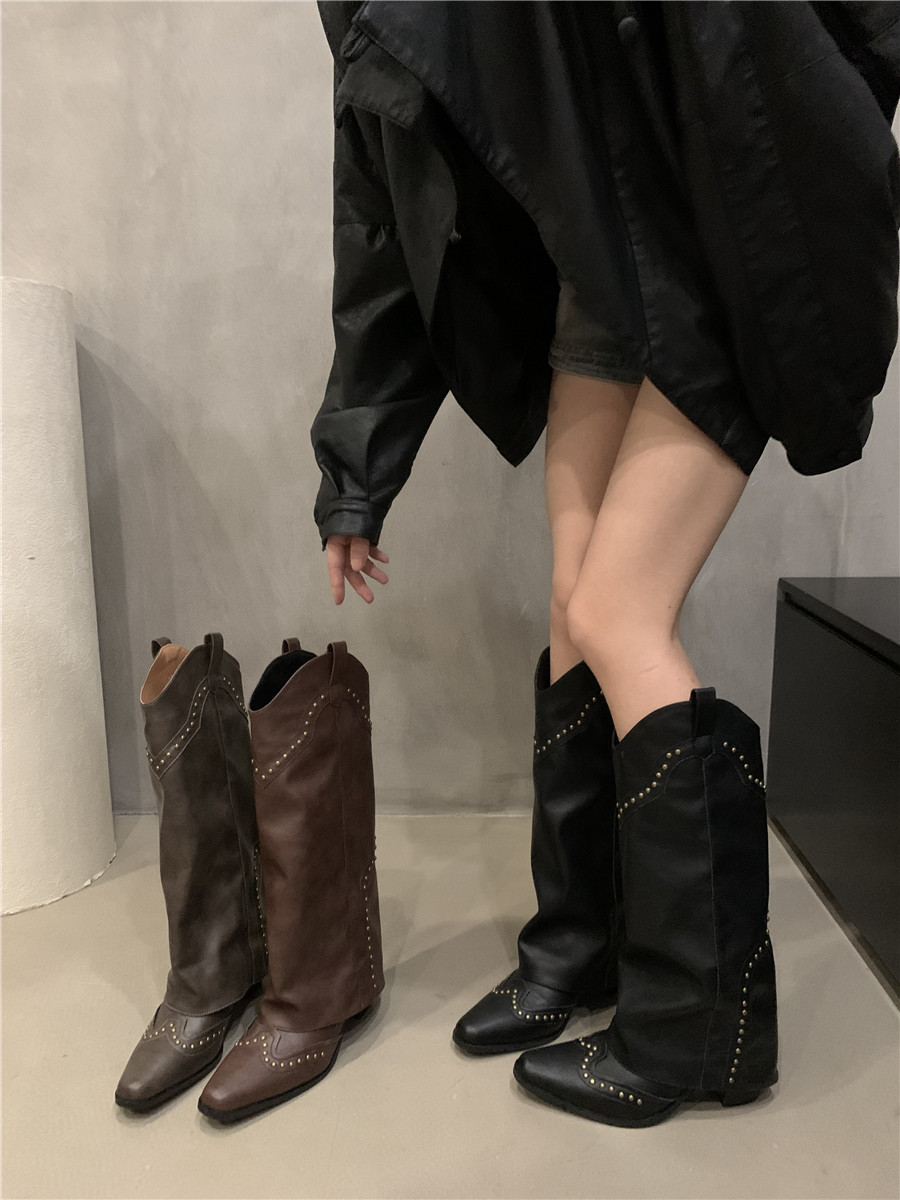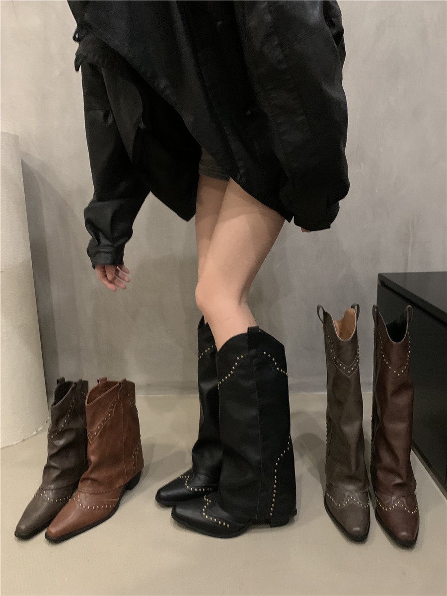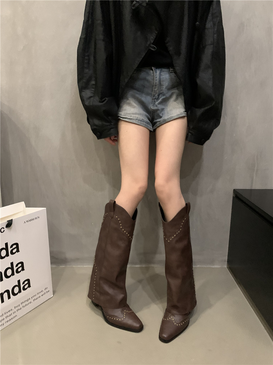Ретро высокие сапоги, штаны, универсальные джинсовые короткие сапоги в английском стиле, французский стиль