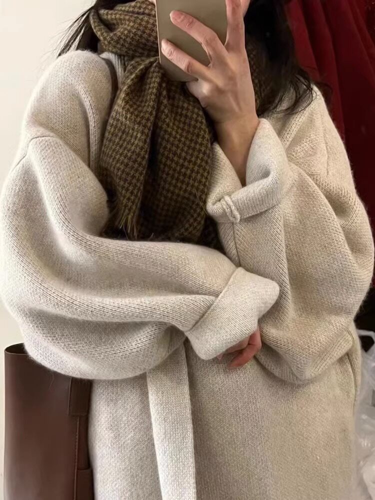 Свитер, осенний демисезонный элитный трикотажный кардиган, длина миди, стиль, облегающий крой, оверсайз, увеличенная толщина