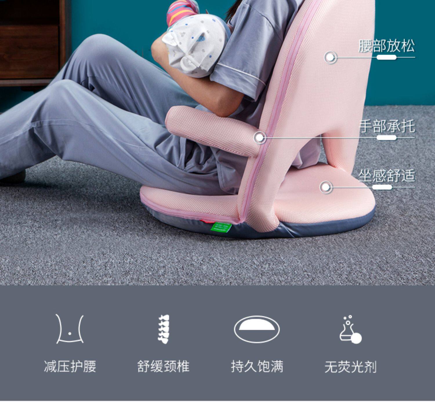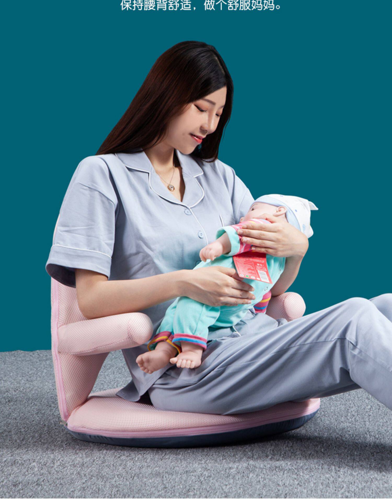 Стул для кормления, кресло для грудного вскармливания, беременная женщина с артефактом ограничения обнимает ее талию, ленивый диван с татами на подушке