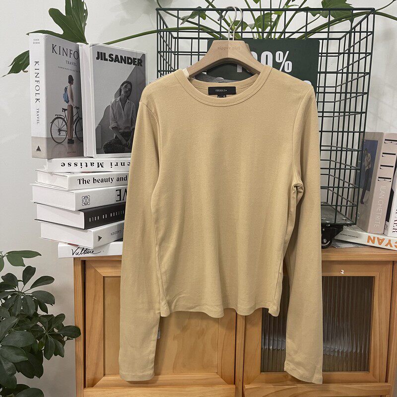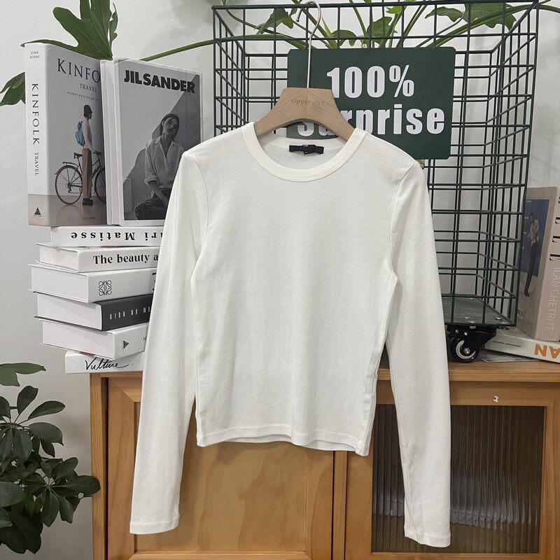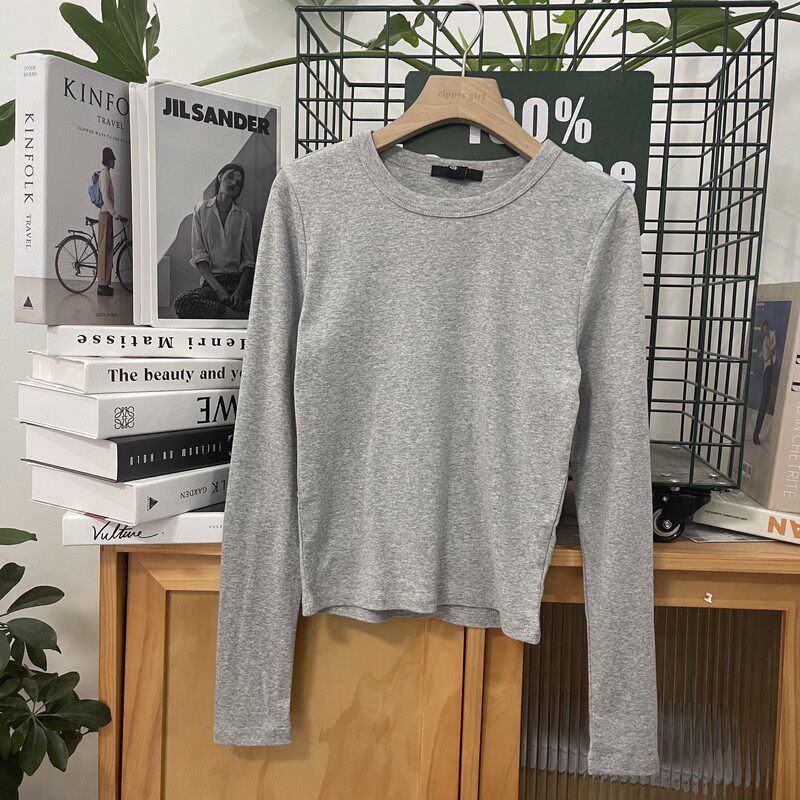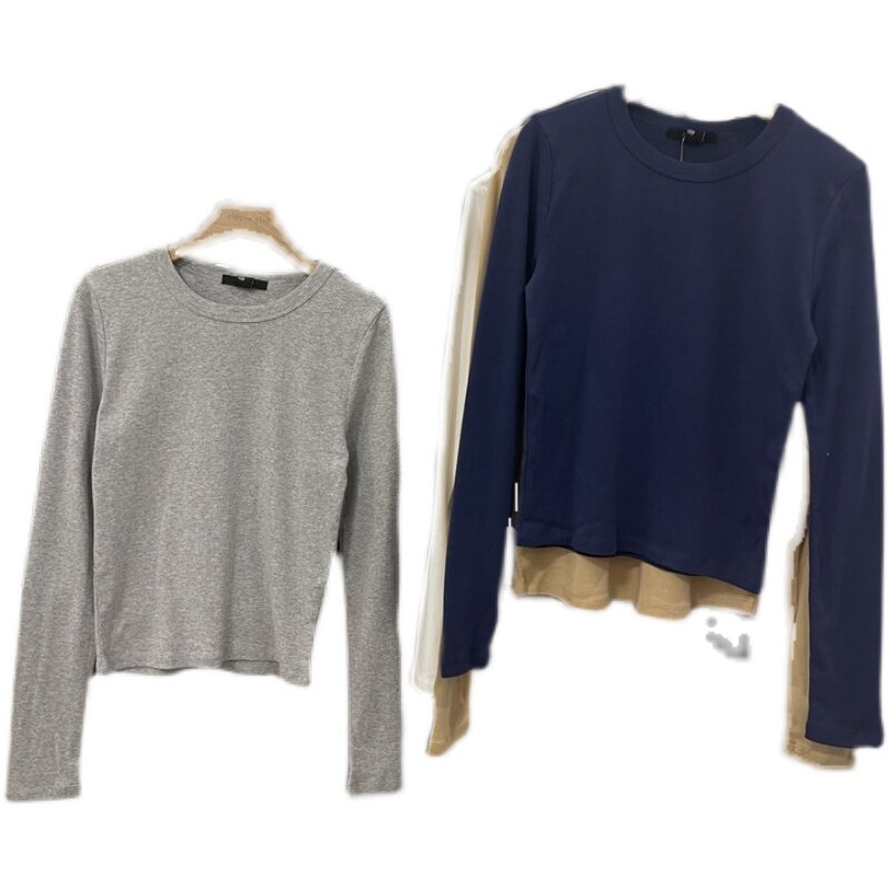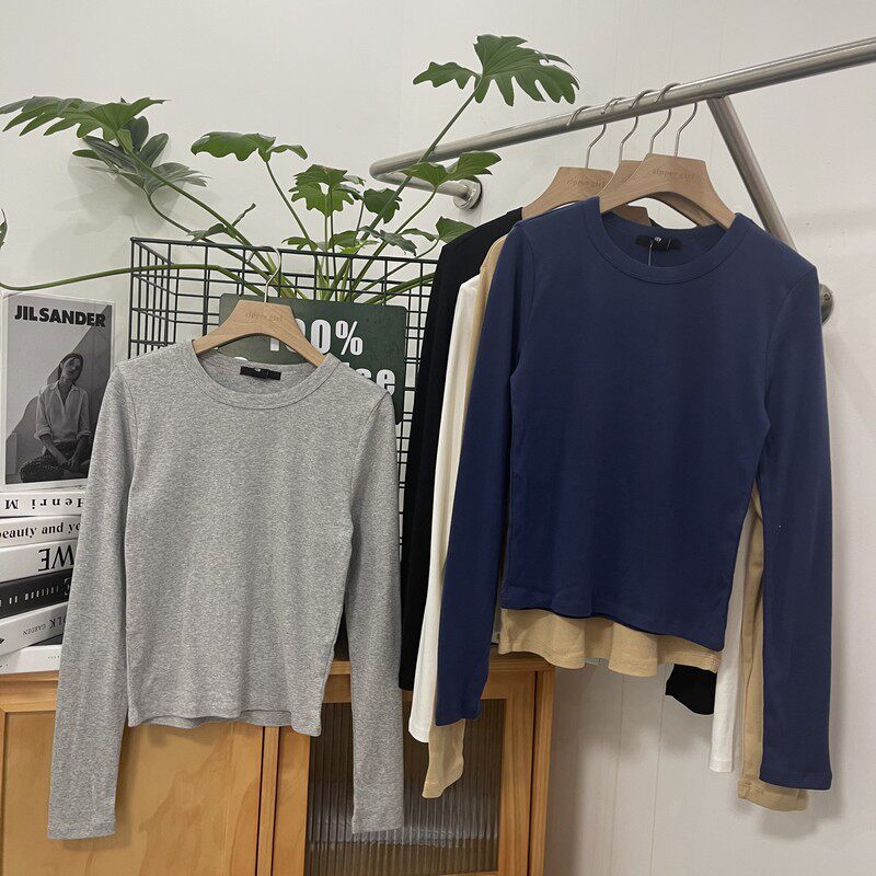 Эластичный хлопковый однотонный универсальный лонгслив с круглым воротником, комплект, облегающий крой, простой и элегантный дизайн