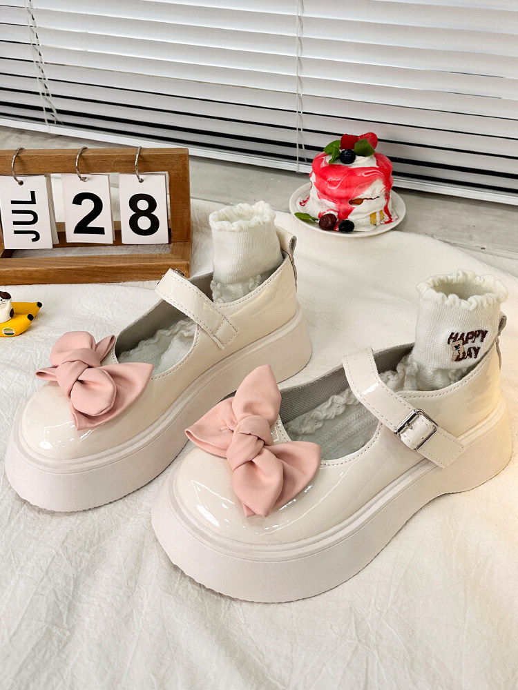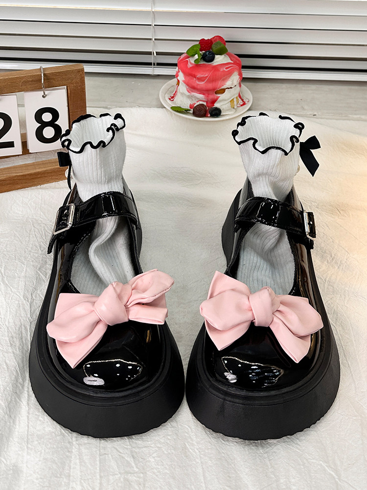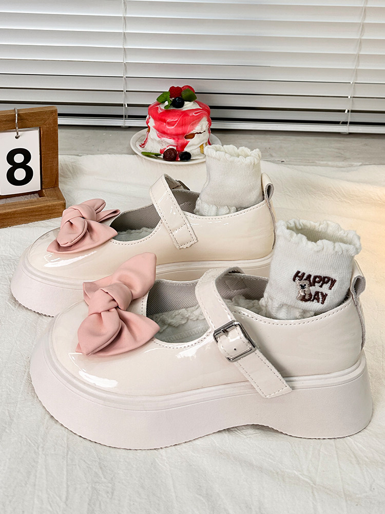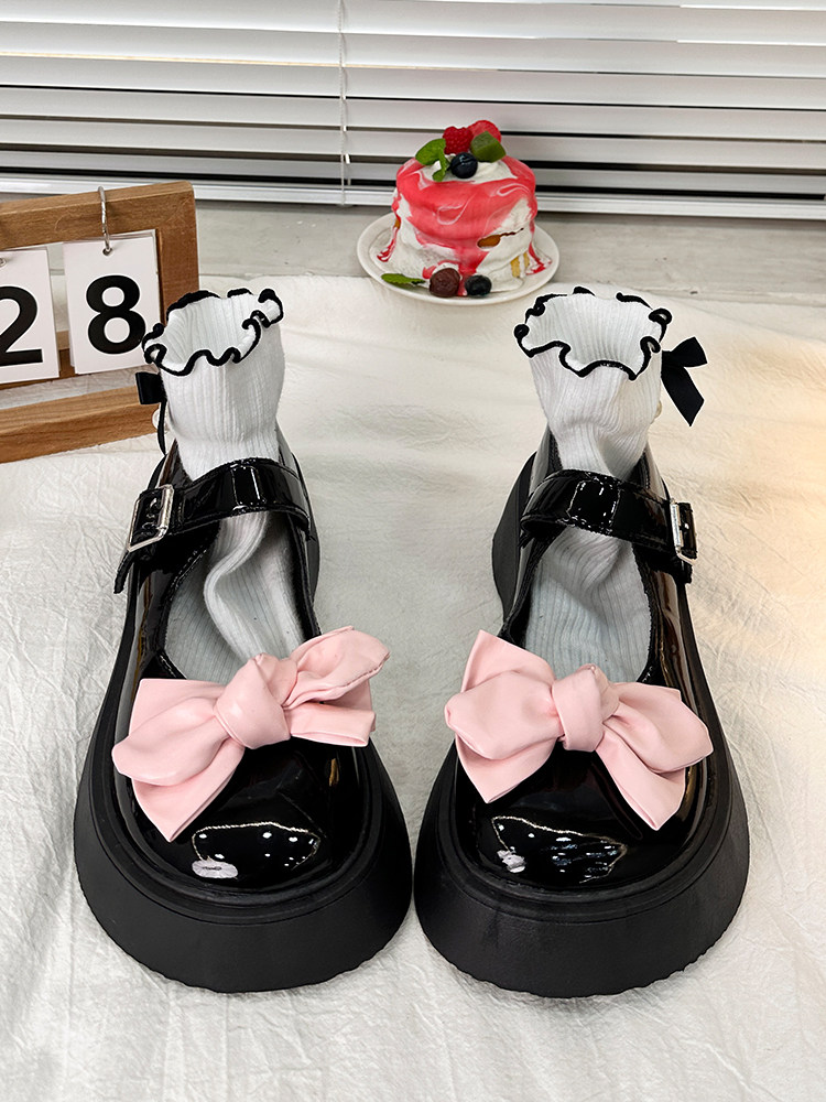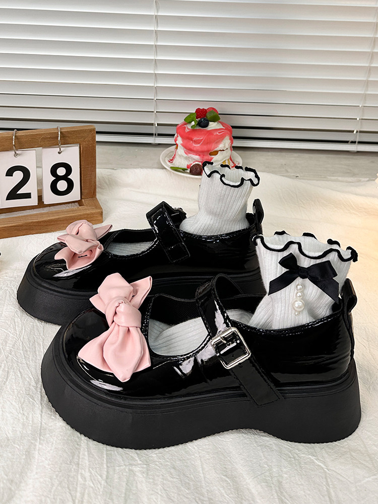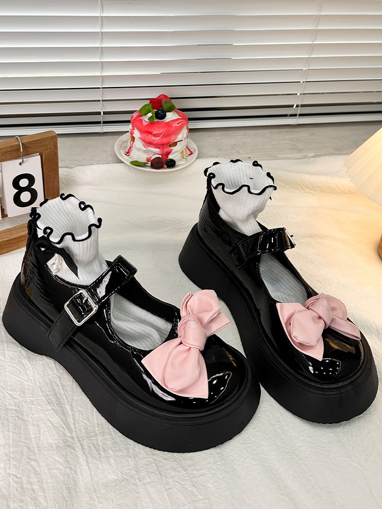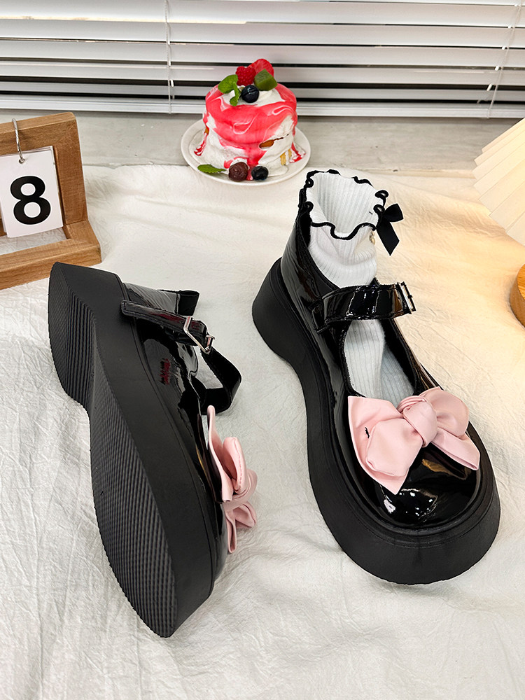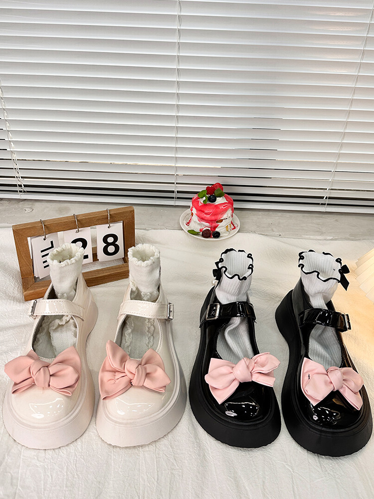 Японская обувь для кожаной обуви на платформе с бантиком, осенняя, коллекция 2023, стиль Лолита