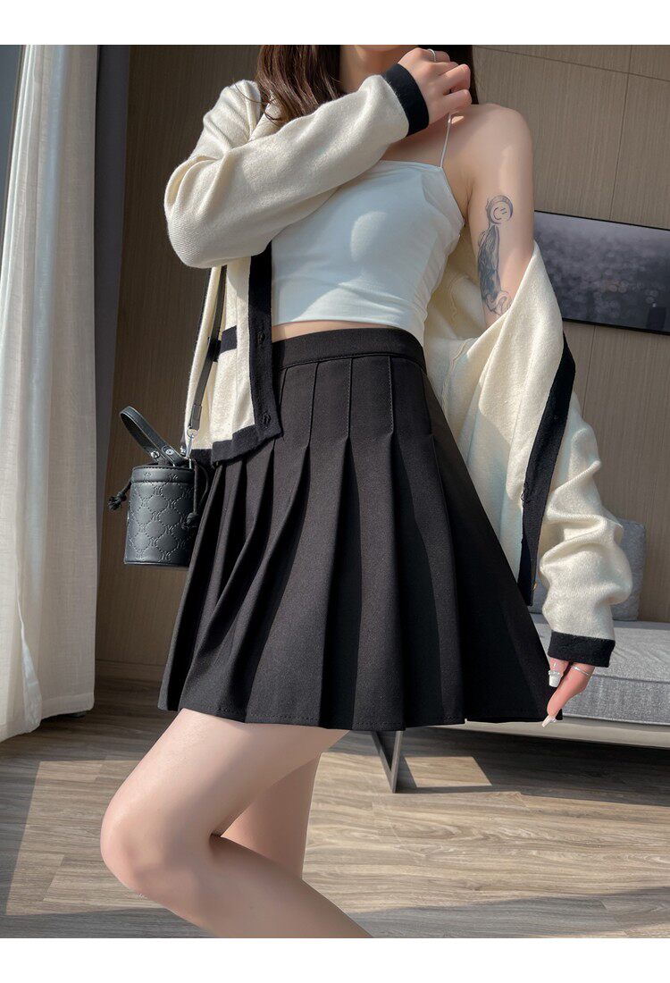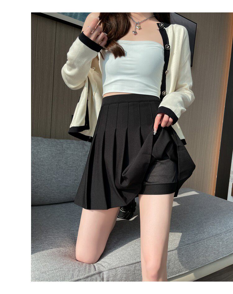 Летняя юбка в складку, приталенная ткань, мини-юбка, высокая талия, А-силуэт