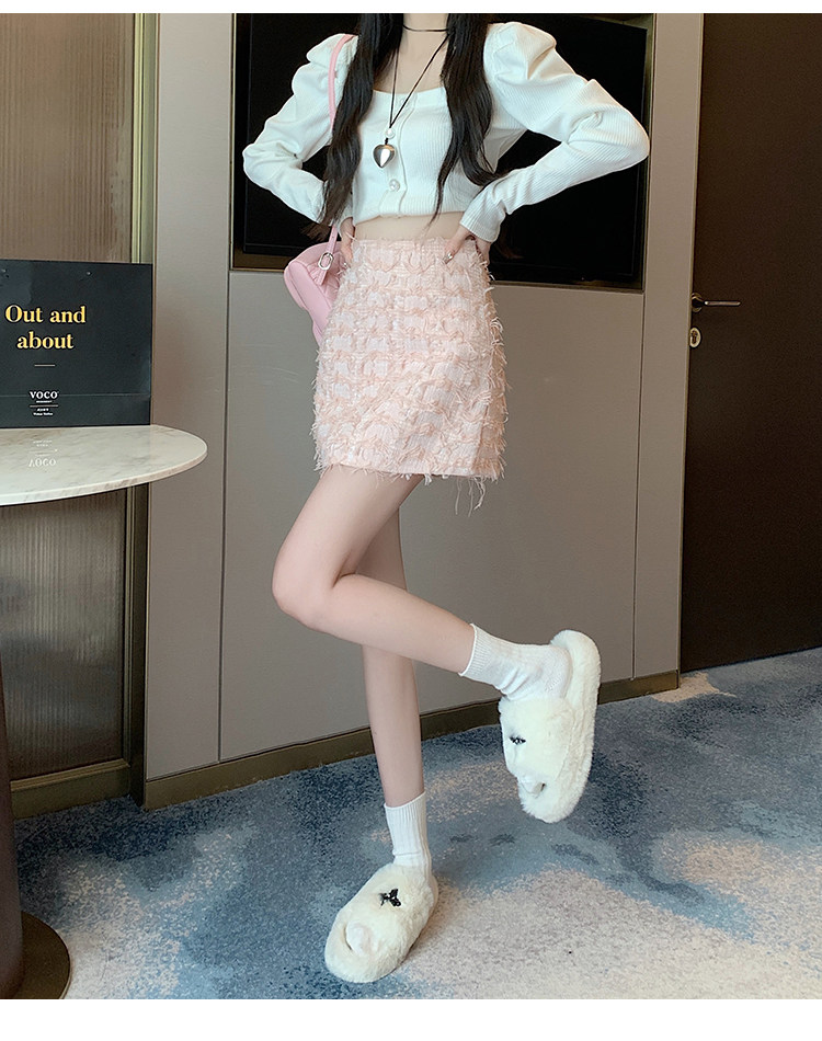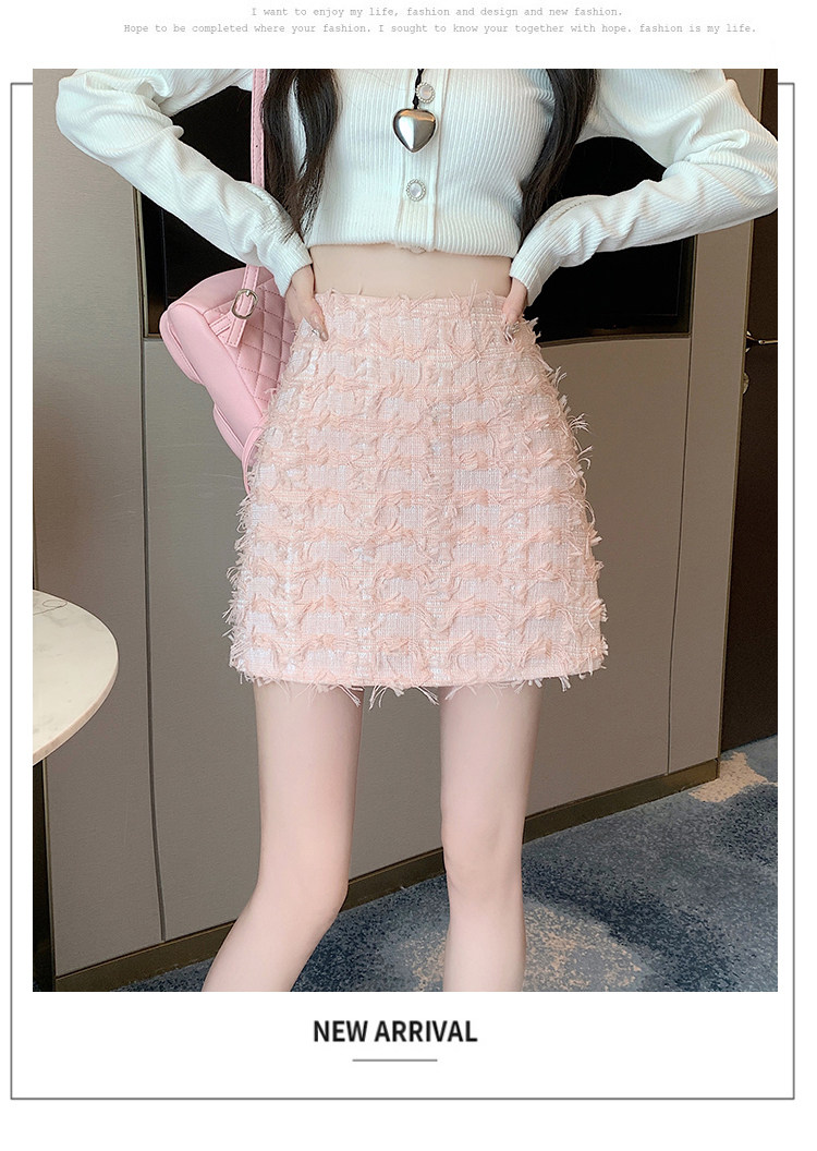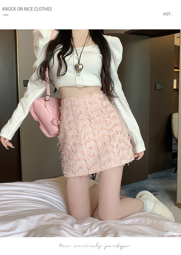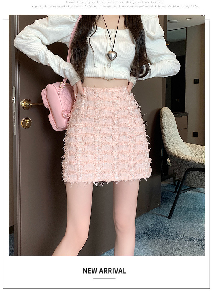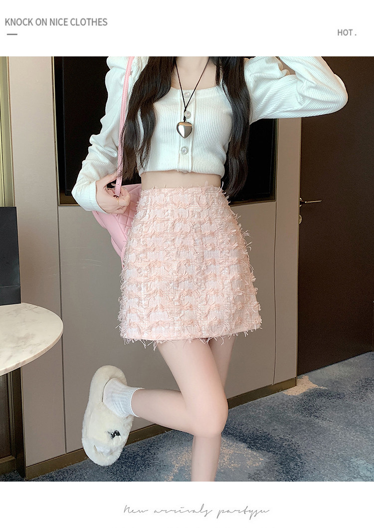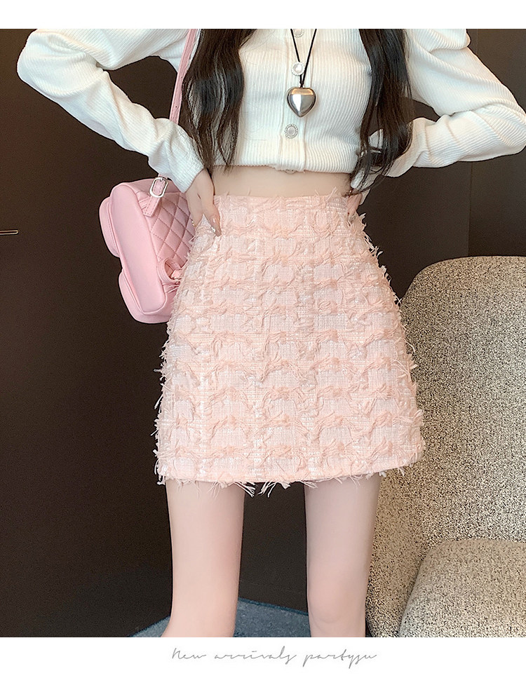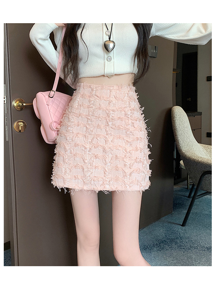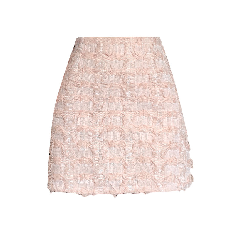 Розовая осенняя приталенная дизайнерская юбка, в стиле Шанель, А-силуэт, высокая талия