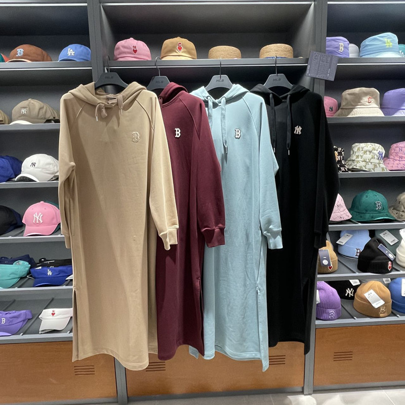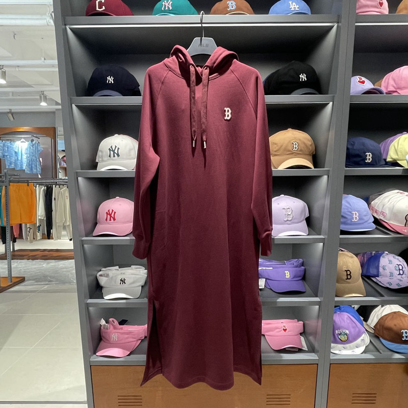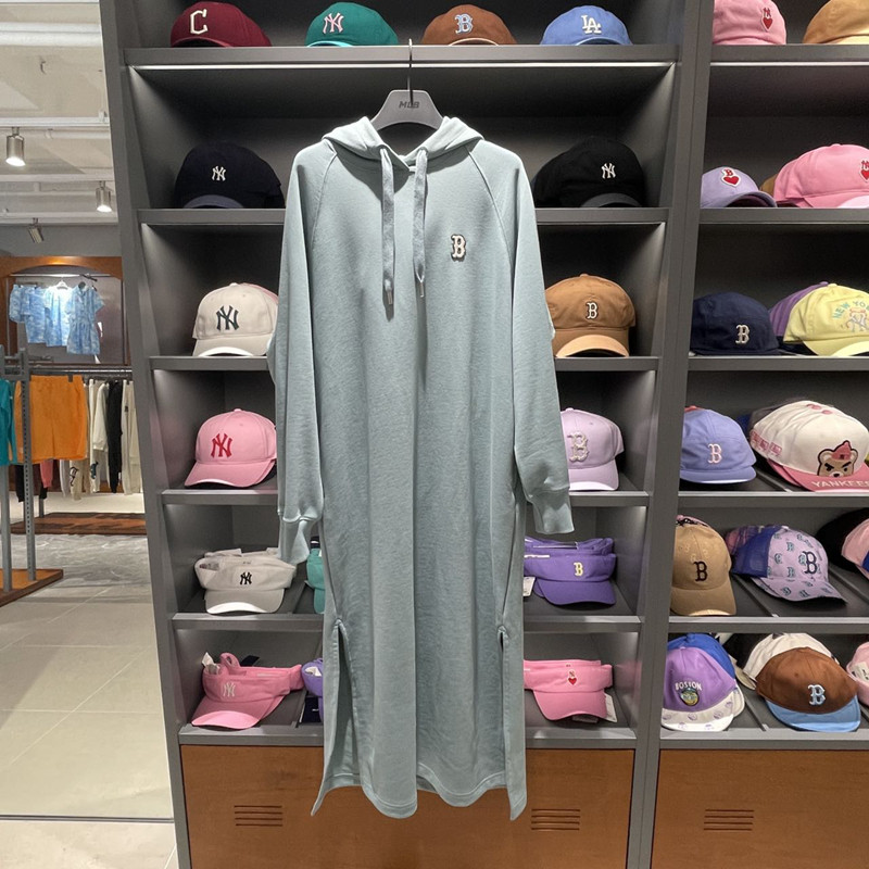 MLB, классическая толстовка с капюшоном, длинное платье для отдыха, с вышивкой, длина макси