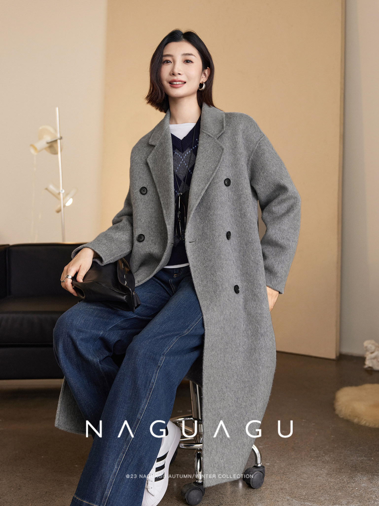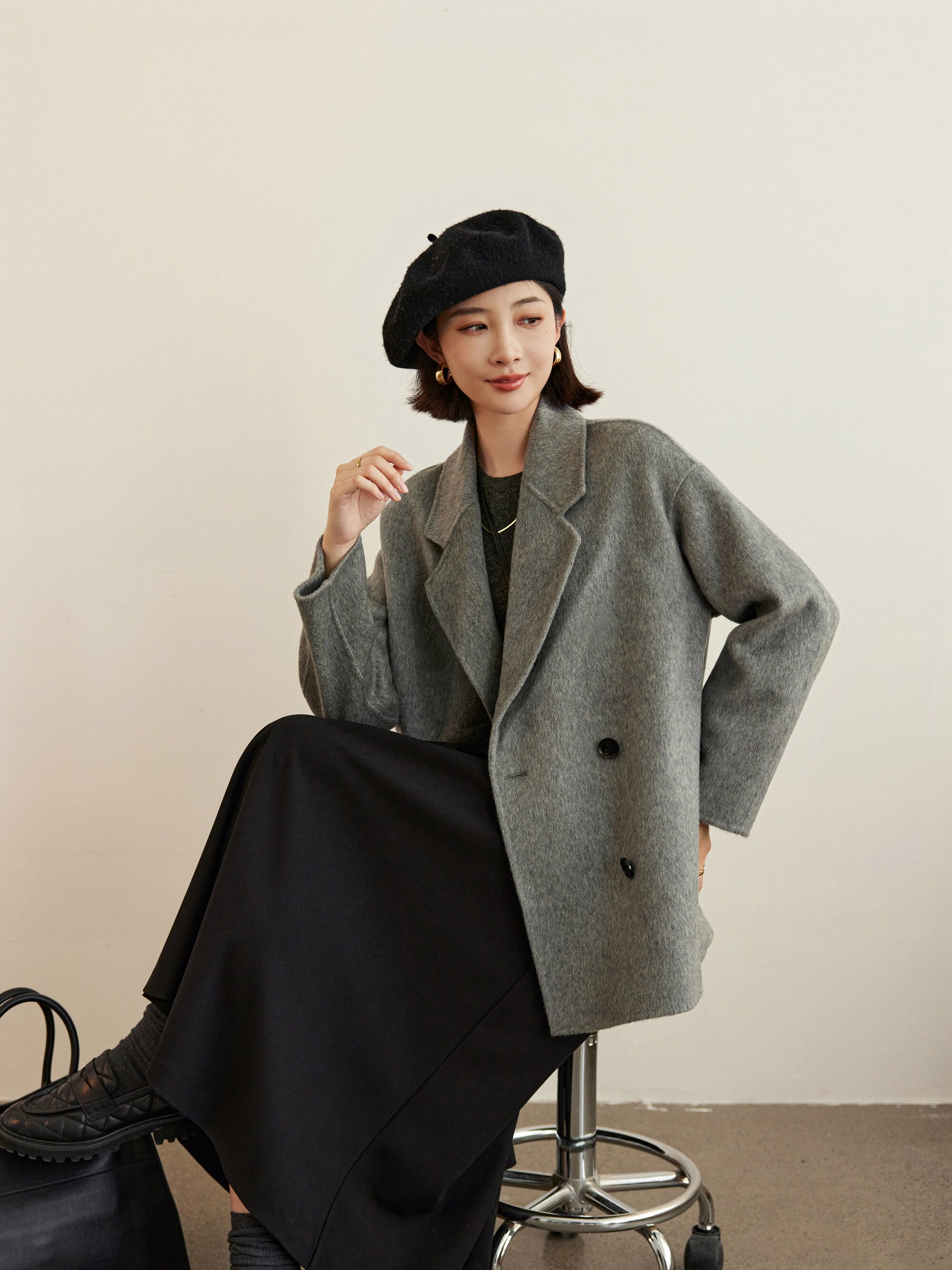 Шерстяное двусторонное зимнее шерстяное пальто, кашемировая длинная куртка, средней длины