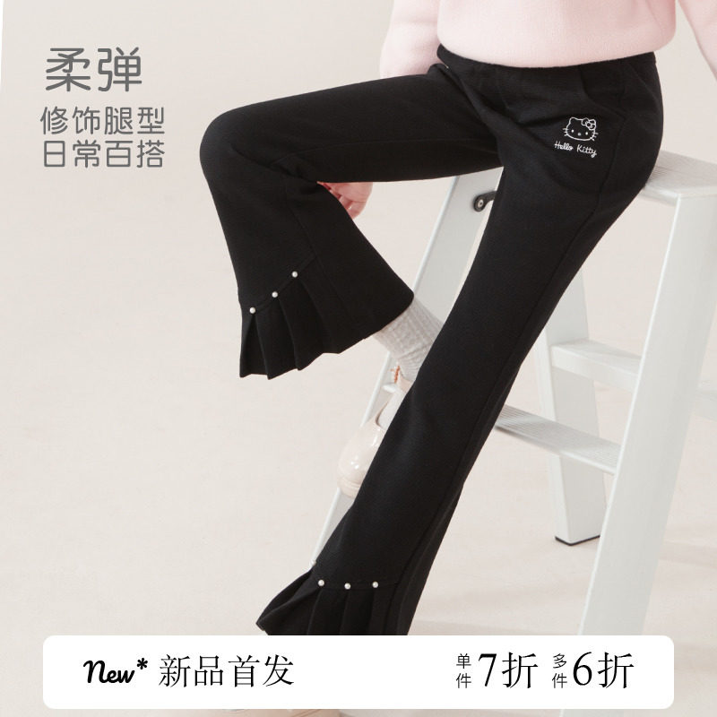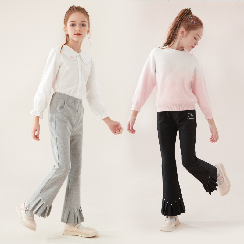 Осенние штаны, детские черные штаны-клёш, новая коллекция, подходят для подростков, детская одежда