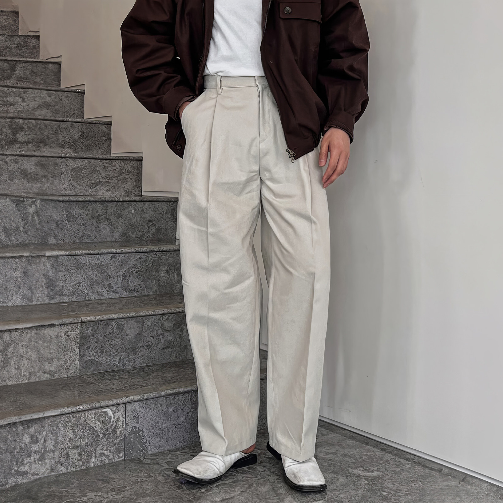 Абрикосовый пиджак классического кроя, мужские осенние трендовые универсальные штаны, свободный прямой крой