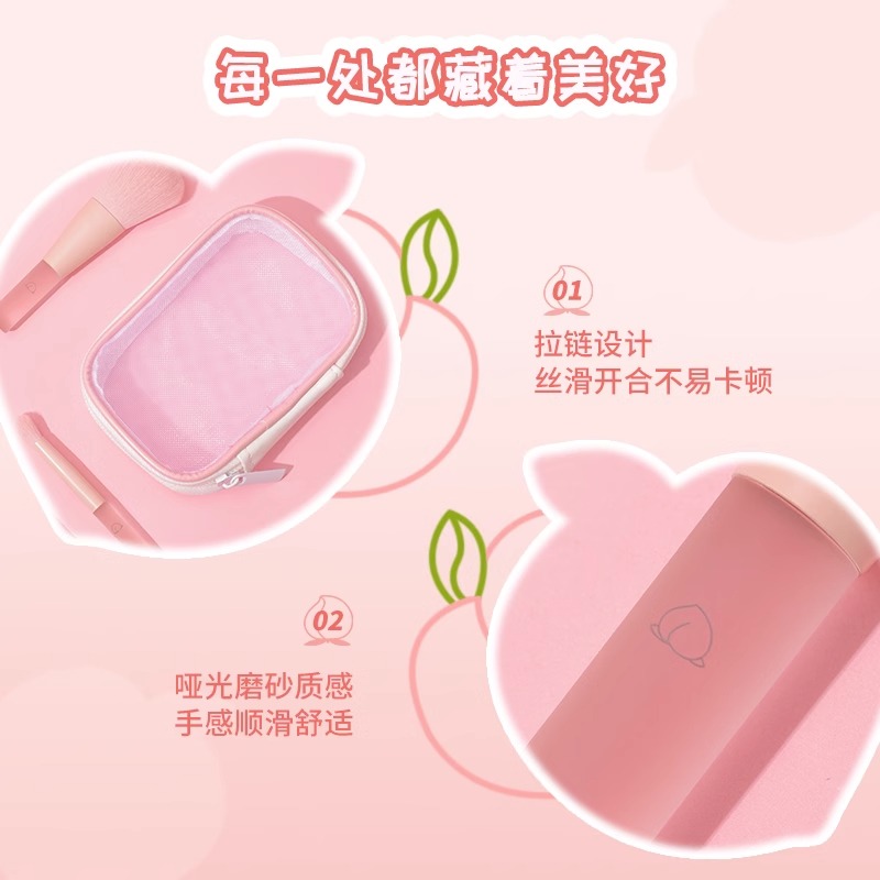 Miniso Mingyou Peach Powder Series Mini Portable Makeup Set Set Brush Super Soft Hair Tool Travel Travel