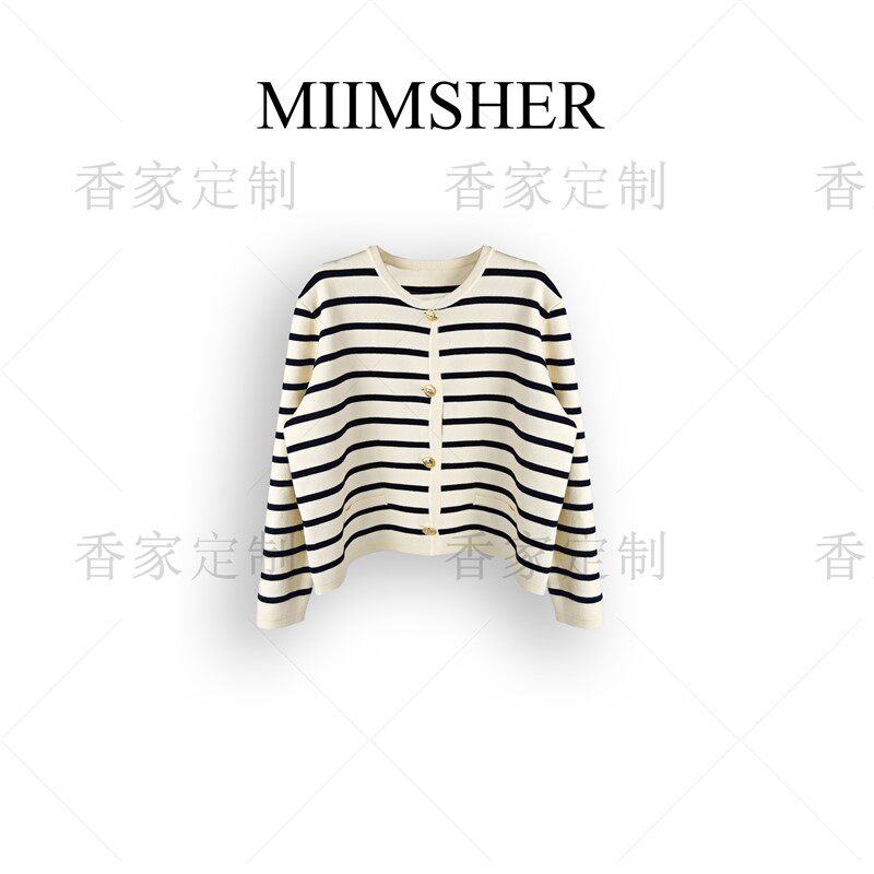 Douyin Selin полосатый вязаный кардиган из шерсти, осенняя драпировка для тяжелой промышленности, тонкая и универсальная 234014