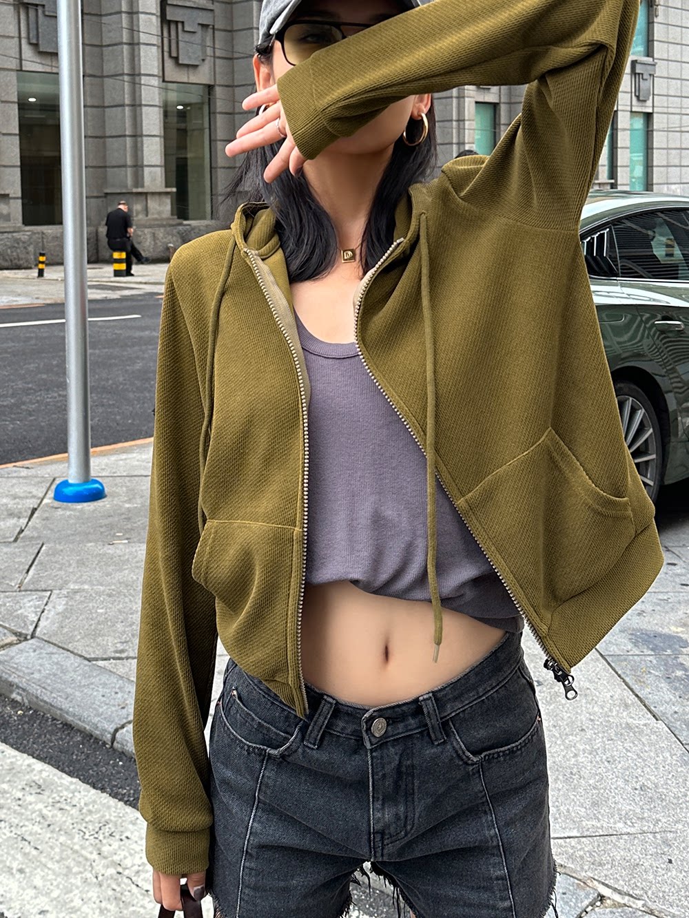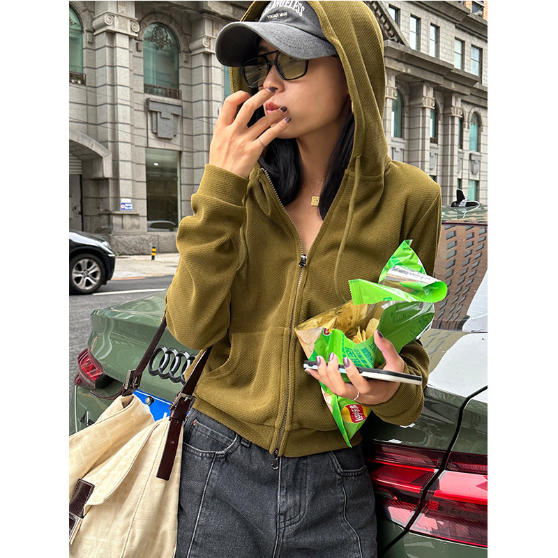 Короткая осенняя толстовка с капюшоном, осенний кардиган с молнией, куртка, в западном стиле