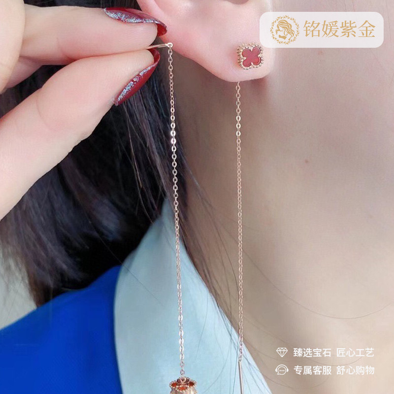 Ювелирное украшение, золотые красные серьги, Россия, 14 карат, розовое золото, четырехлистный клевер