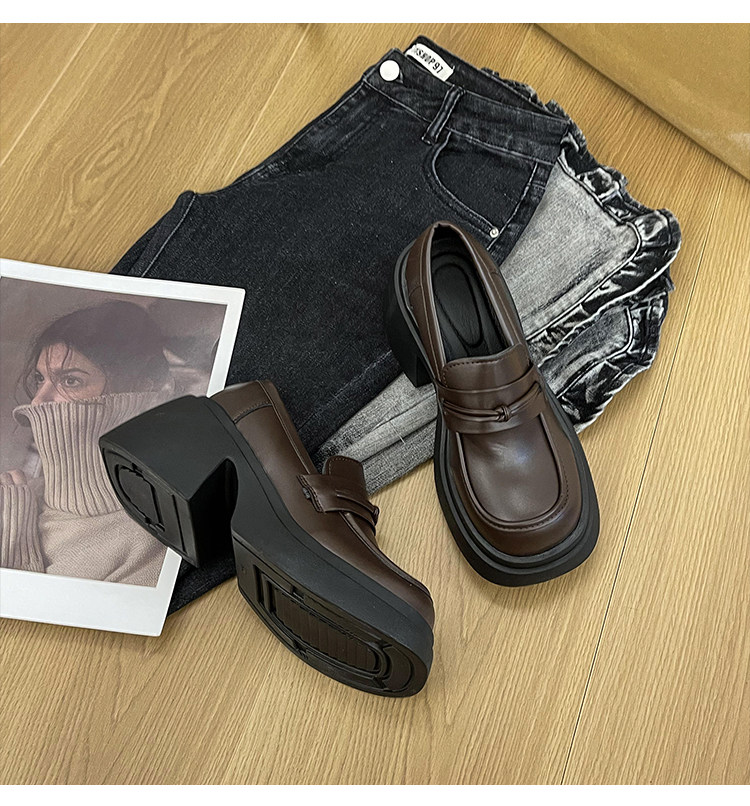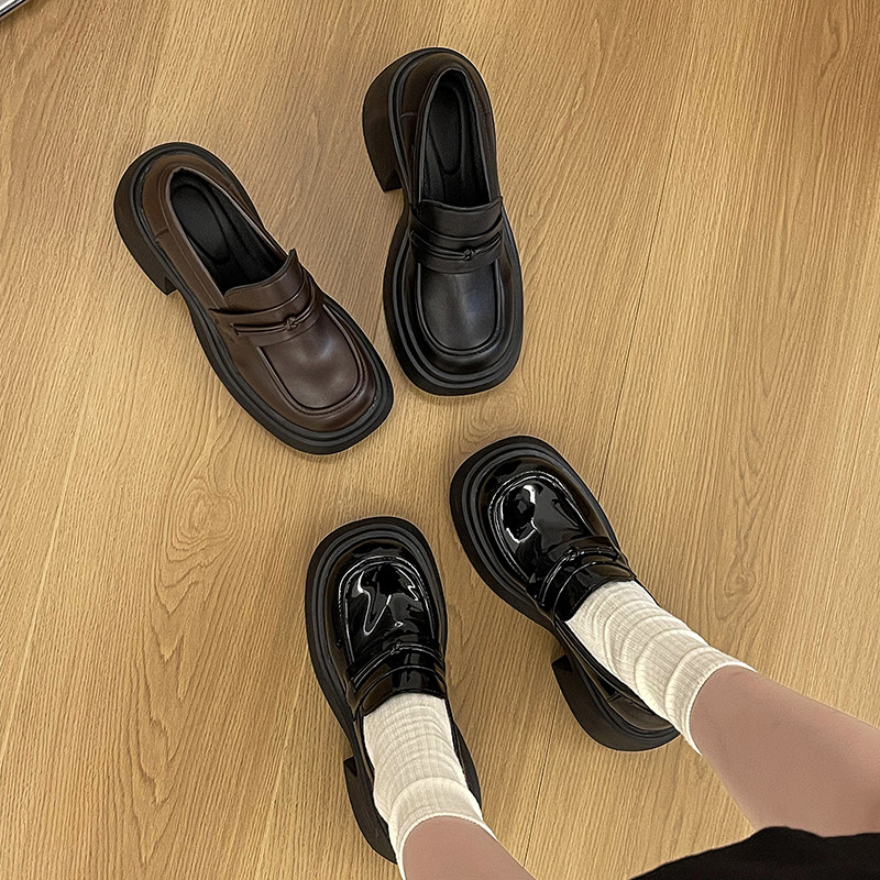 Черные лоферы в английском стиле на платформе, летняя универсальная обувь для кожаной обуви, в британском стиле, 2023